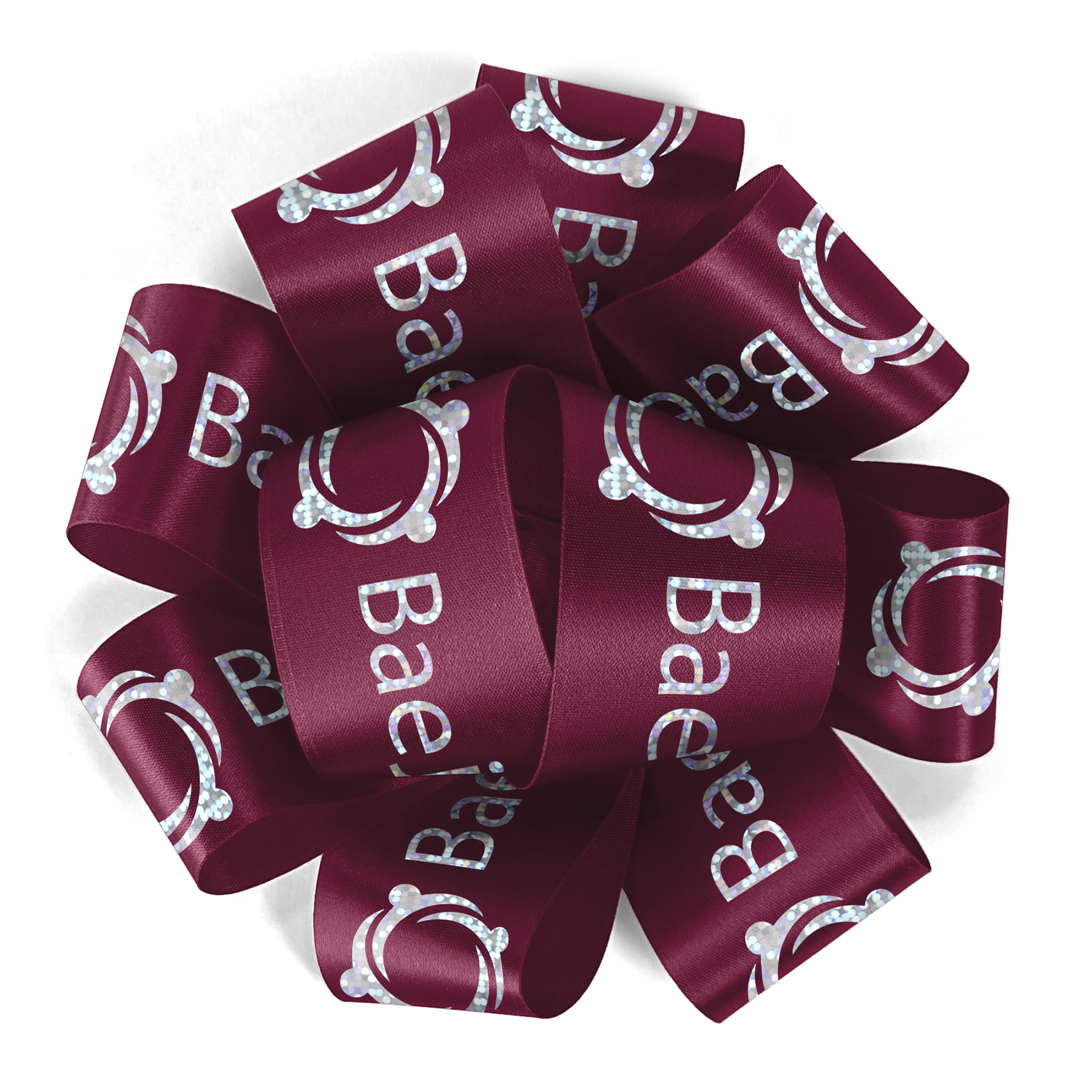 This Thick Badge Satin Bow holds its shape beautifully, adding a touch of elegance to any occasion. Each bow can be personalized with text or a logo and comes with a convenient peel-and-stick backing for easy application. Add streamers to your bows for an elegant look—call for production times and pricing. 1 1/2″ W x 100 yd L