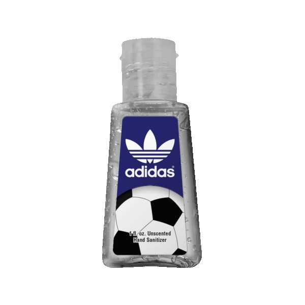 When a sink and and some soap aren’t nearby, thankfully our sanitizer is here to save the day! This 1 oz. clear sanitizer comes in a truly unique trapezoid bottle that’s not only eye catching, but easy to carry. Customize with your branding and design on a full-color label. Made in the USA in an FDA Registered facility. Product contains 70% alcohol by volume. Complies with CPSIA, FDA, Prop 65. 1.25″ W x 3″ H x 0.875″ D