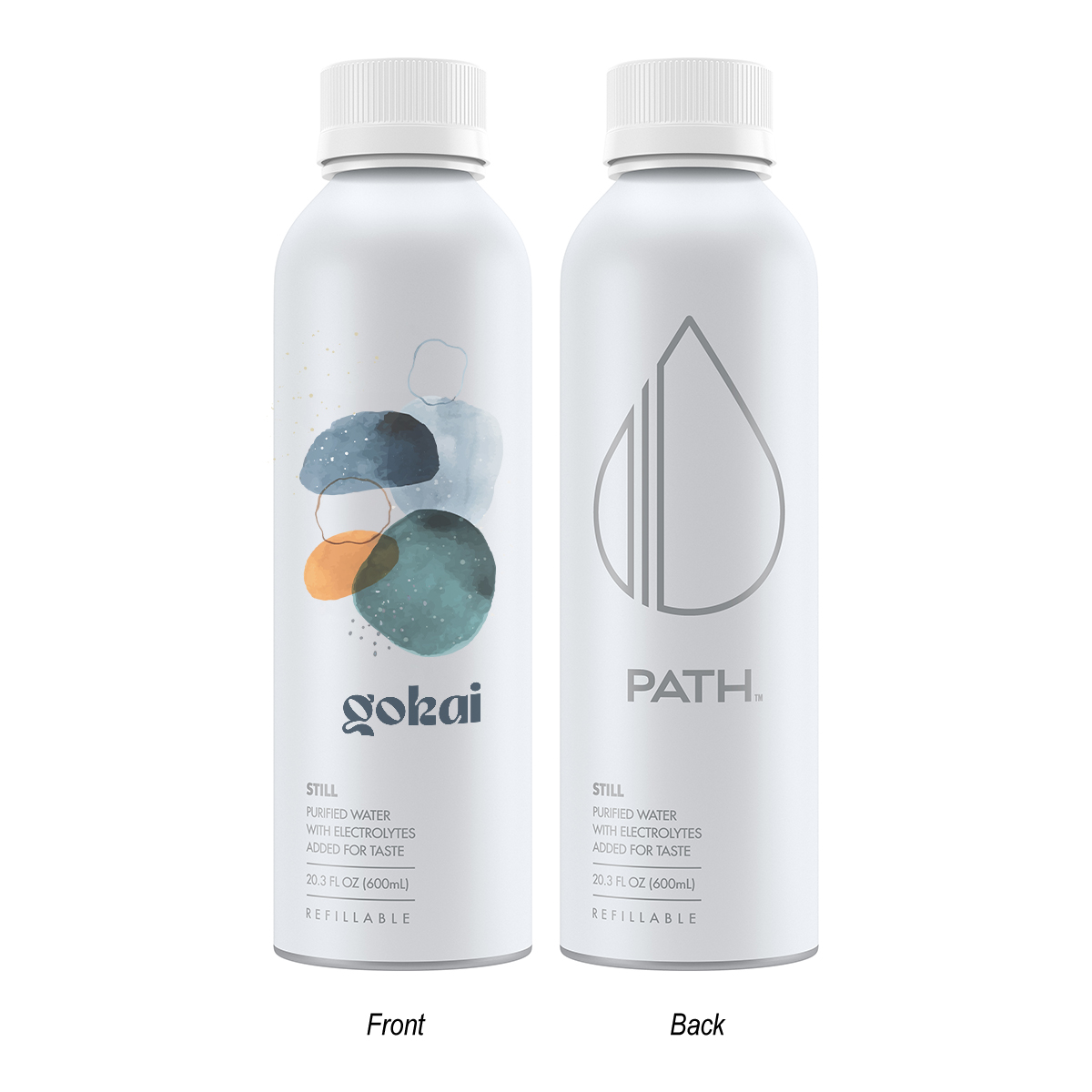 Includes Ultra-Purified, Reverse Osmosis Filtered Water With Electrolytes. Water Packaged In Refillable Single-Wall Aluminum Bottle. 100% Recyclable. 8.75″ H
