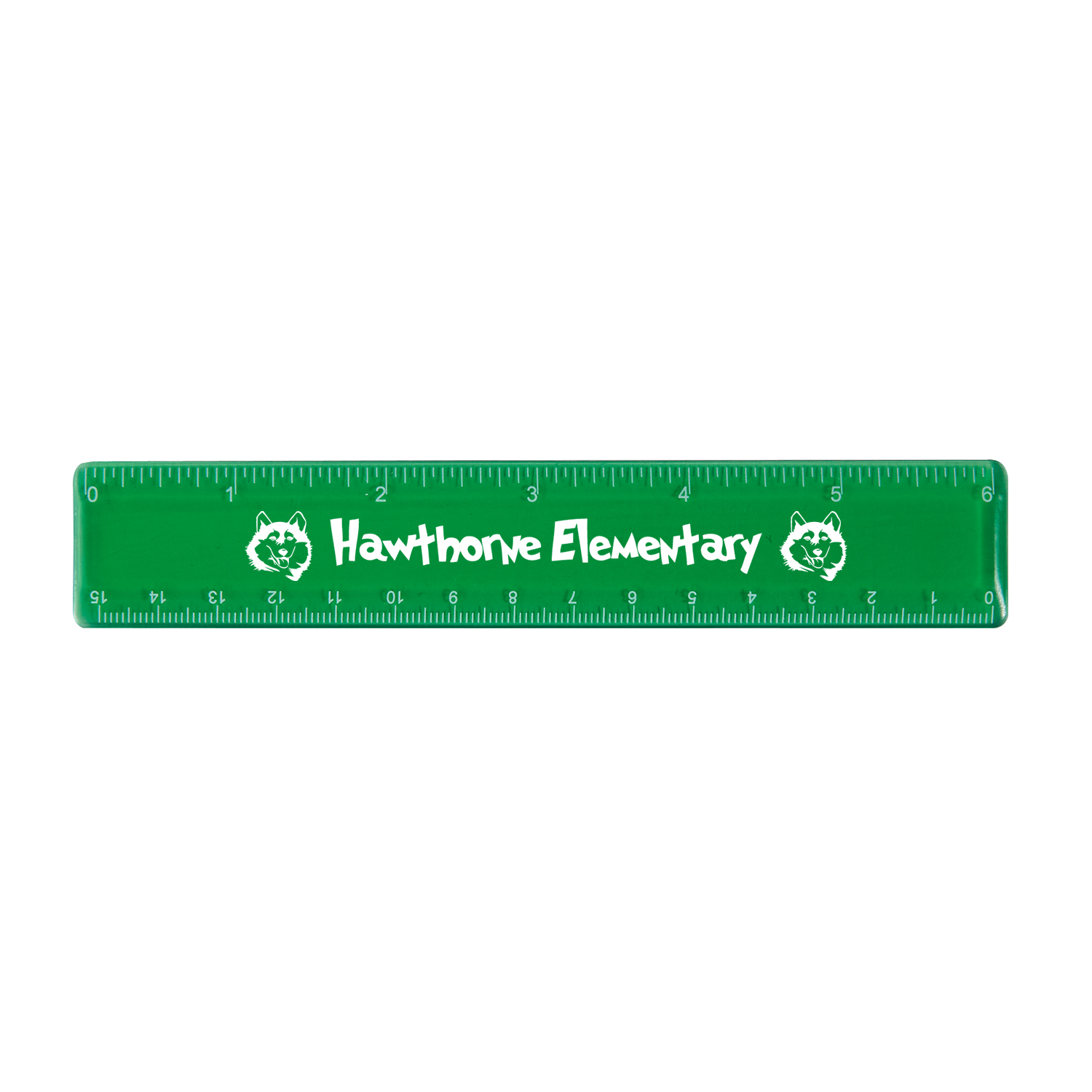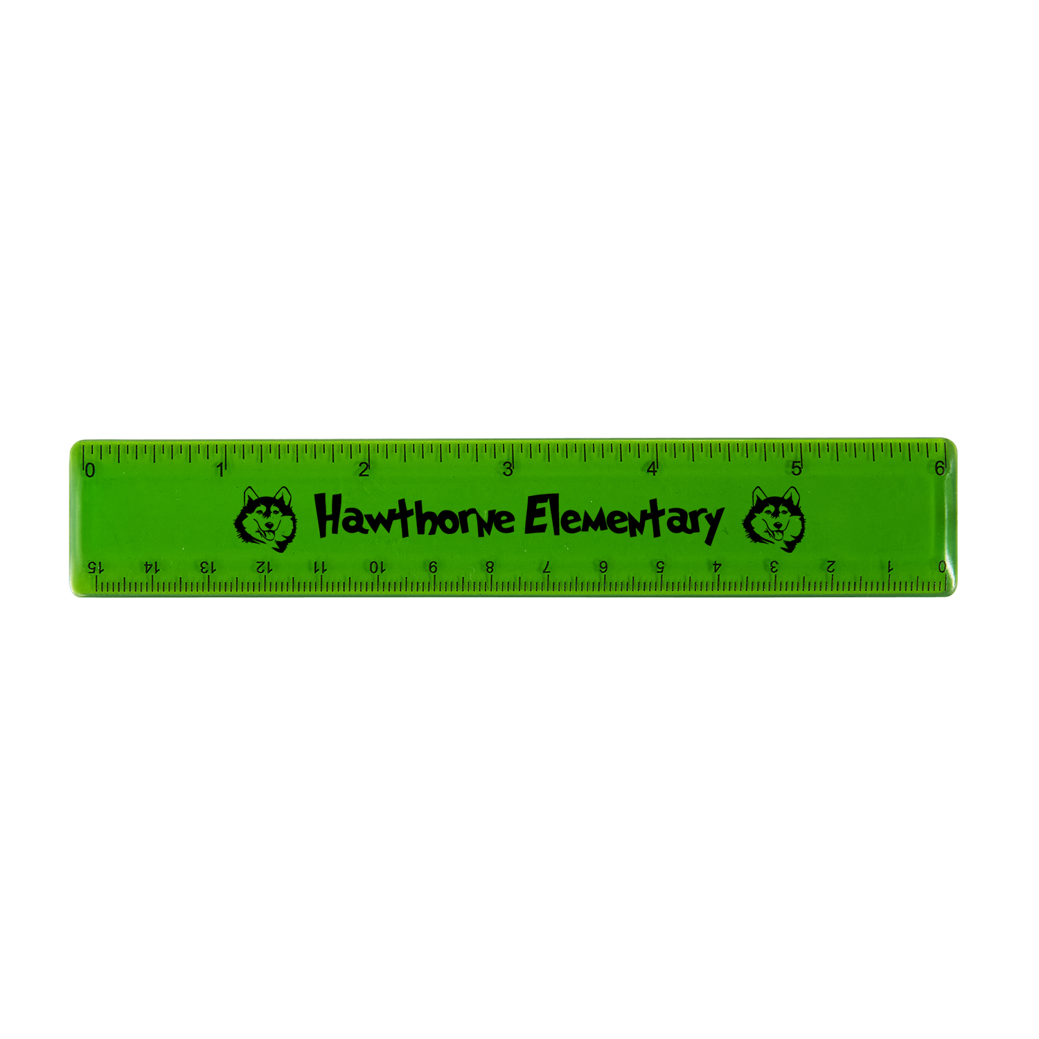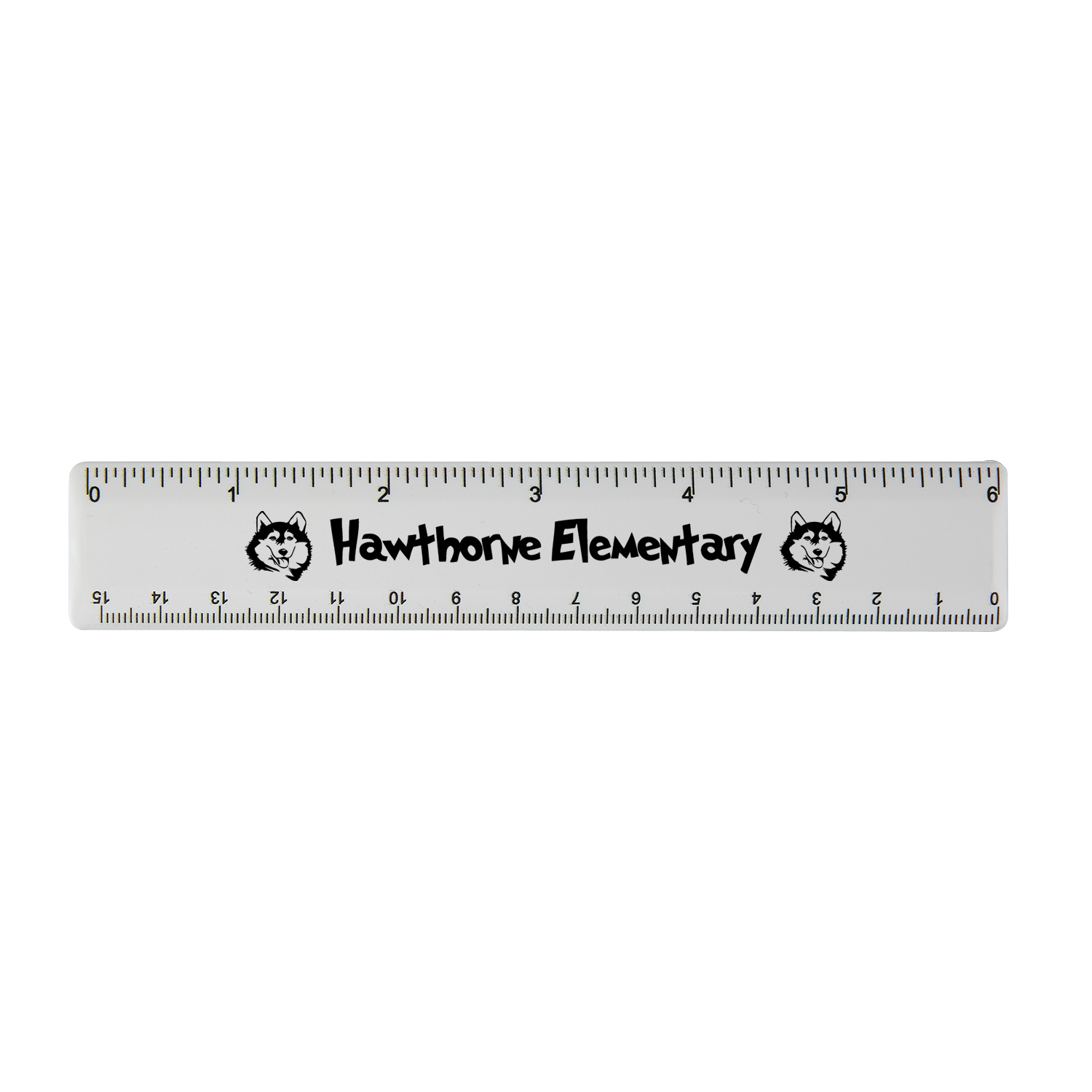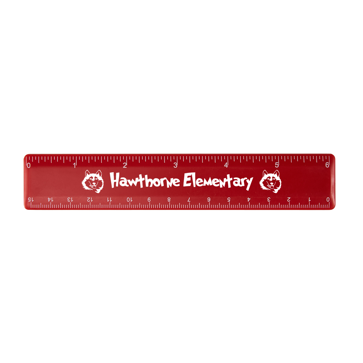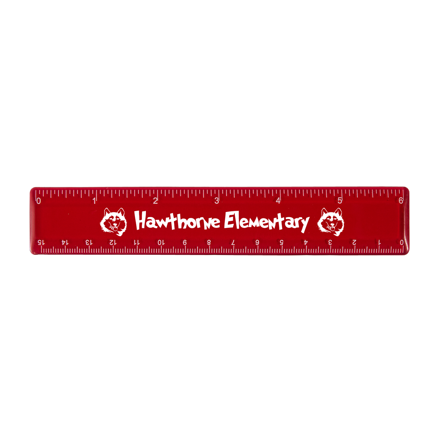 6″ plastic ruler with standard and metric scales. 1″ W x 6 3/16″ H x 1/8″ D