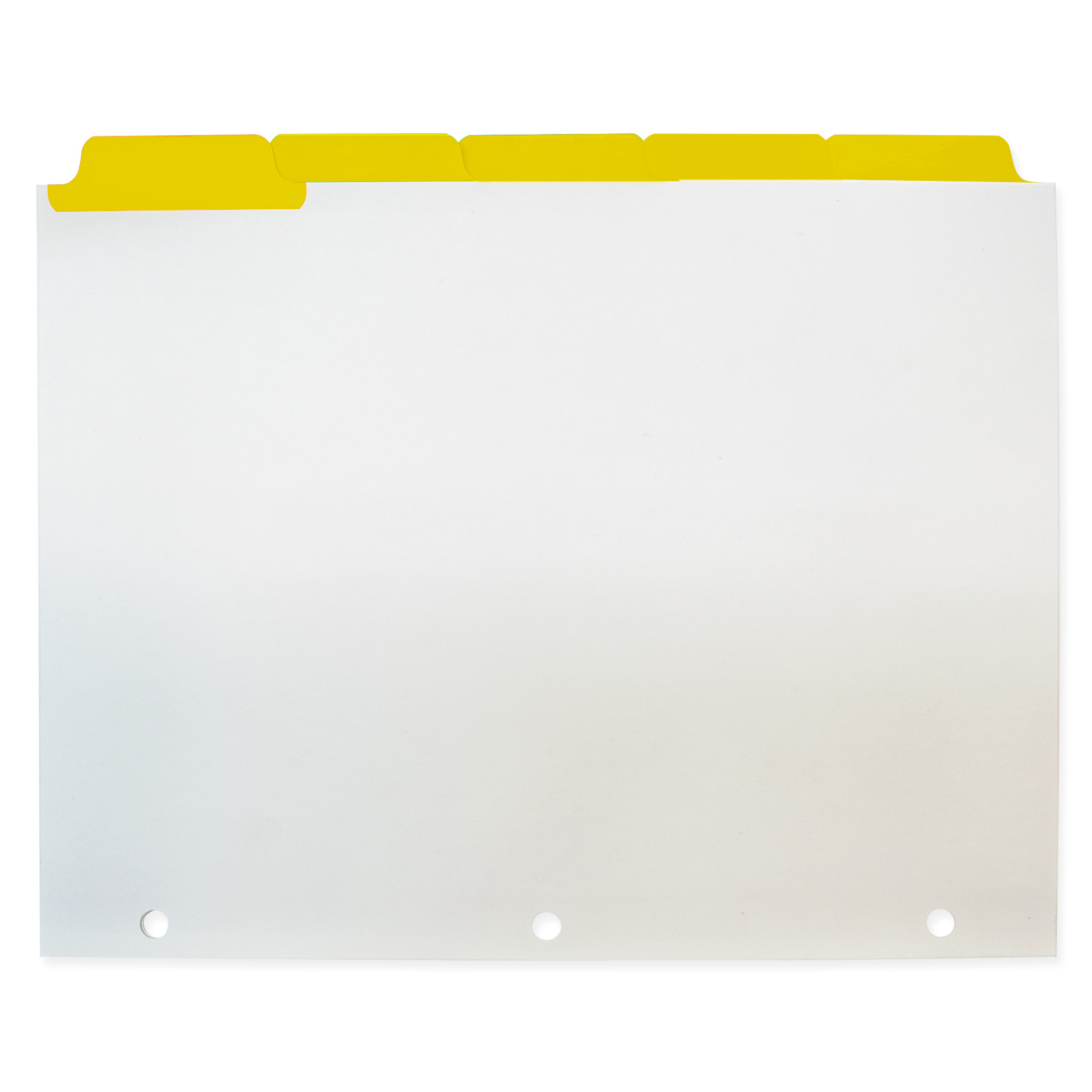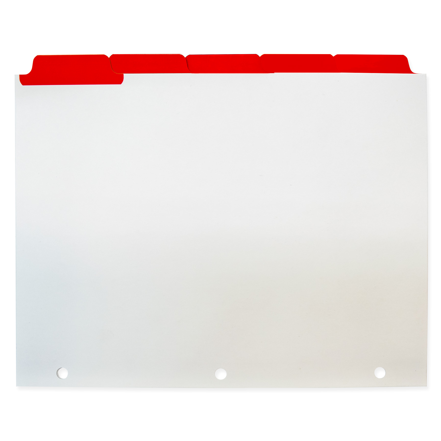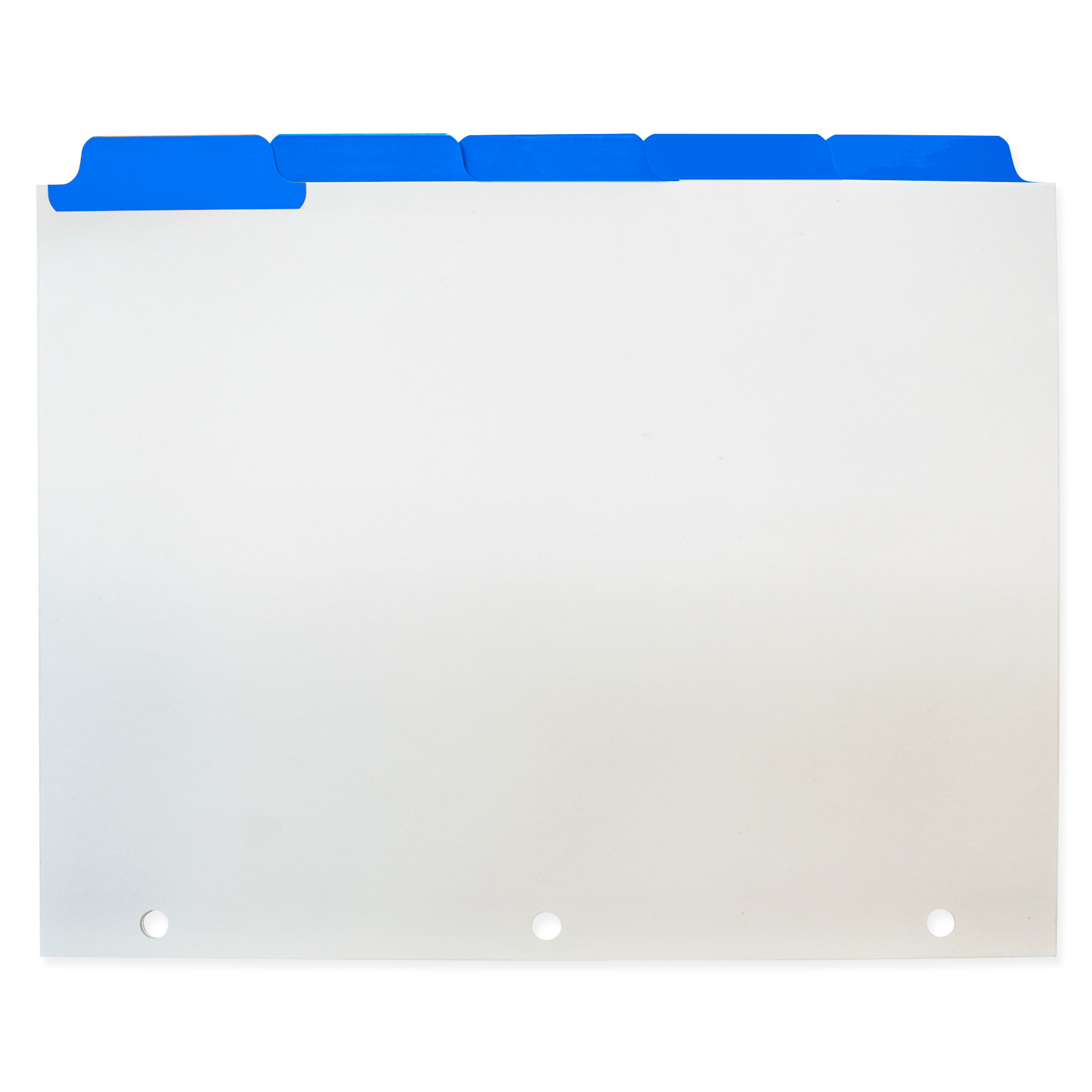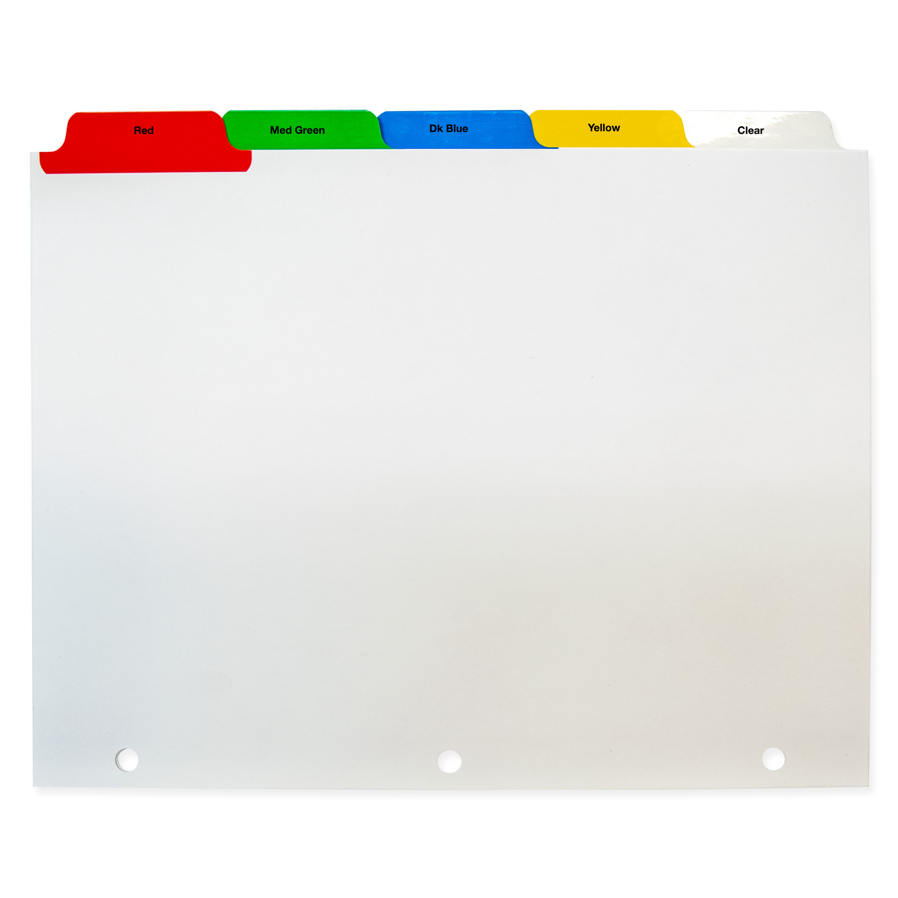No ring binder is complete without index tabs! Index tabs are the essential finishing touch when organizing important documents or presentations in a ring binder. Our standard index tabs come with three round holes with mylar reinforcement, 90 lb. white index paper with square corners, tab extension of 1/2″, and black print on the tab. Choose from multiple colors for the mylar tabs. Complies with Prop 65. 11″ H x 8.5″ W