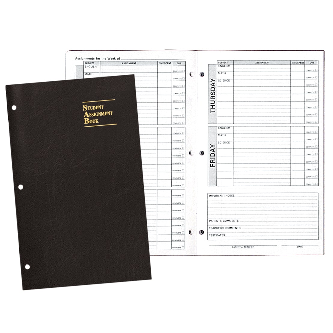 Student Assignment Leatherette Covers. 7×11. Saddle-stitched. 40 full weekly spreads. Parent teacher comments. 3-hole punched for binder. 7″ W x 11″ H