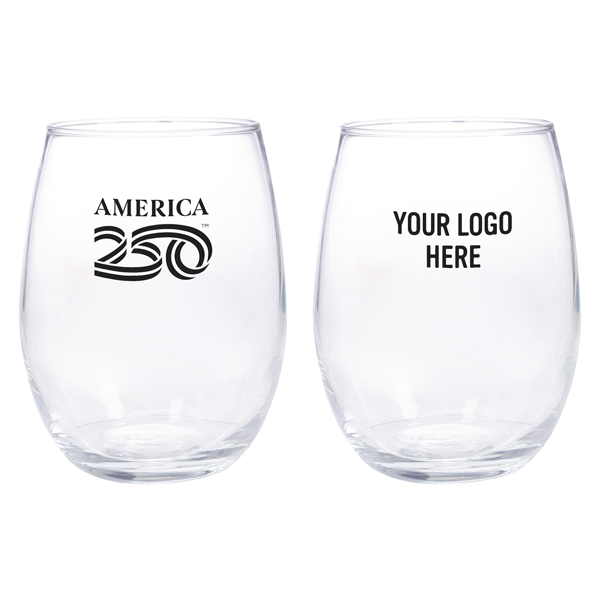 Official America250™ Merchandise Soda-Lime Glass Material Large Stemless Design With Brim Clear Goose Egg Glass Design Hand Wash Recommended. 4.4″ H