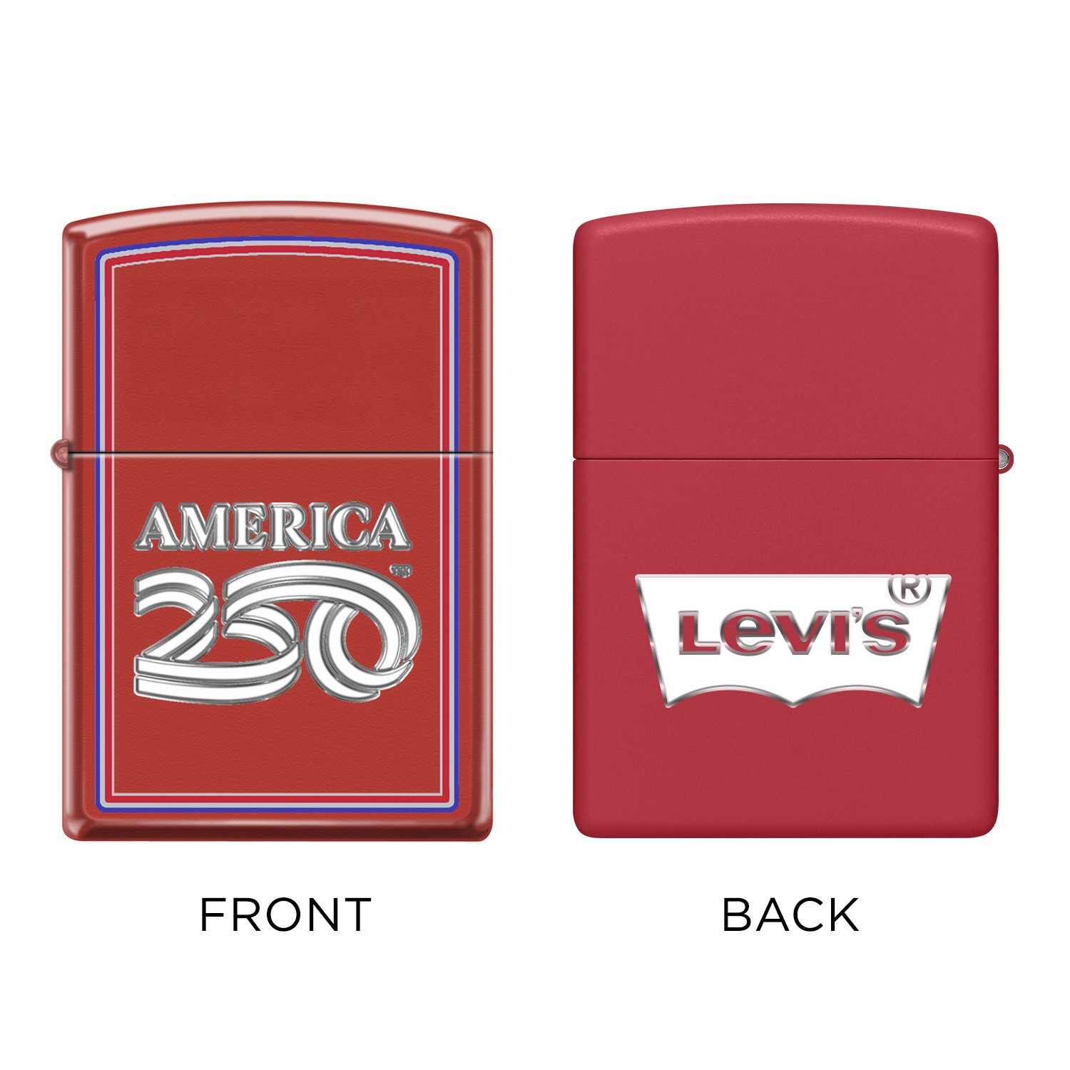 On July 4, 2026, our nation commemorates the 250th anniversary of the founding of the United States. ZIPPO & America250 have joined together in celebration! This special edition Red Matte finish lighter features an officially licensed America250 design. Add your logo to the top or back of this lighter with vibrant full-color printing. Backed by Zippo’s Lifetime Guarantee. Made in USA. Packaged in a gift box. Lighter fluid not included due to shipping restrictions. Complies with Prop 65. .5″ H x 1.5″ W x 2.25″ L