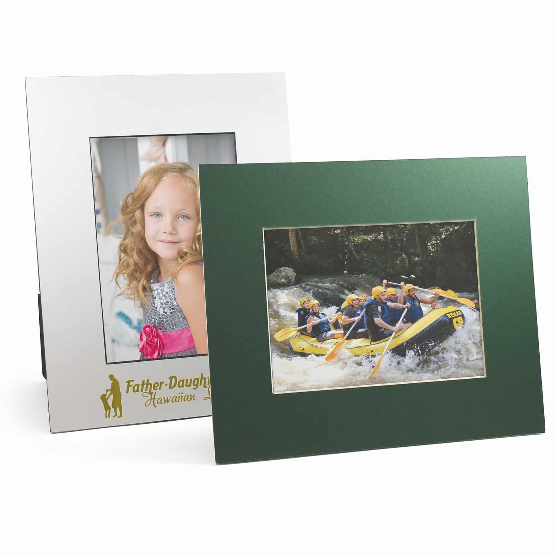 Photo Frame for a single 4″ x 6″ photo with beveled edge window. Easel back allows for horizontal or vertical display. Also available for 5″ x 7″ and 8″ x 10″ photo sizes. Gold foil hot-stamp is standard. 10″ L x 8″ W