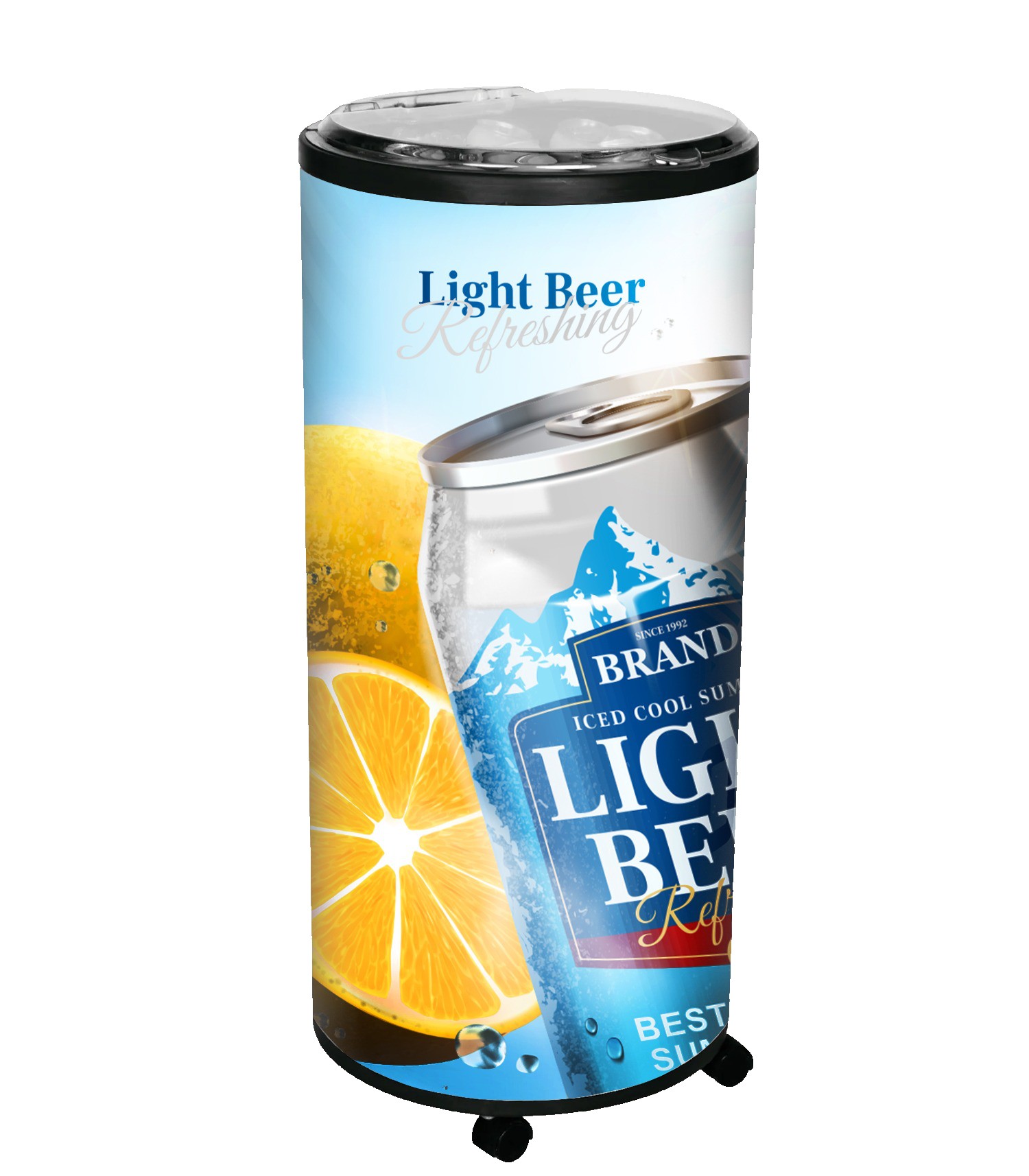 Designed for today’s most popular slim-can beverages, the ChillPoint Slim 44 delivers big display impact in a space-saving footprint. This rotomolded barrel merchandiser is built to spotlight 12 oz slim cans with a clean, easy-to-shop layout that encourages grab-and-go sales.A clear lid keeps your assortment visible, and built-in casters let you roll it into place for endcaps, sampling stations, special promotions, and seasonal POP setups. Made in the USA, the ChillPoint Slim 44 is a dependable, brand-forward cooler designed for high-visibility beverage merchandising.Capacity:56 x 12 oz cans42 x 16 oz cans30 x 20 oz bottles26 x 24 oz cansRecommended for indoor or sheltered use only. Product capacities may vary by container shape and ice load. 16.5″ W x 16.5″ D x 37.25″ H