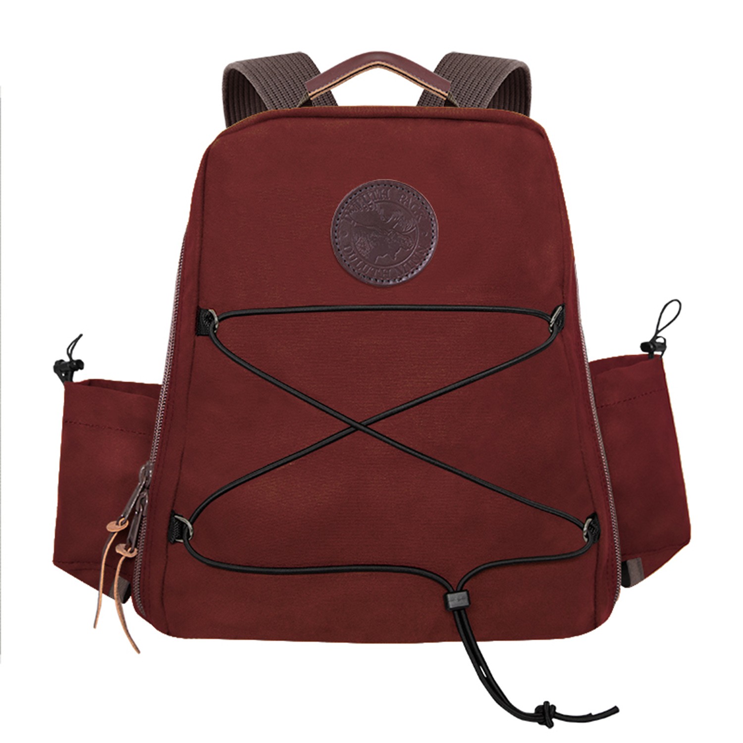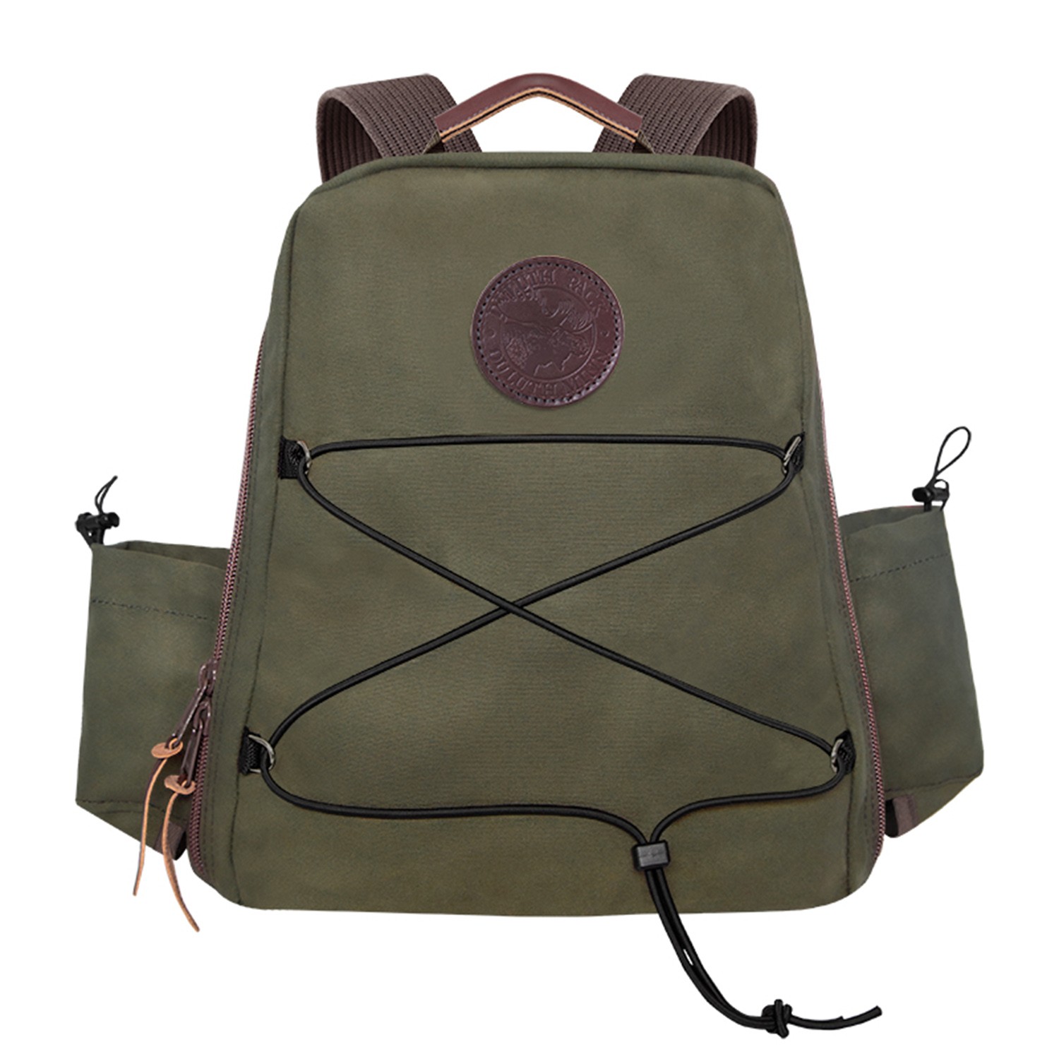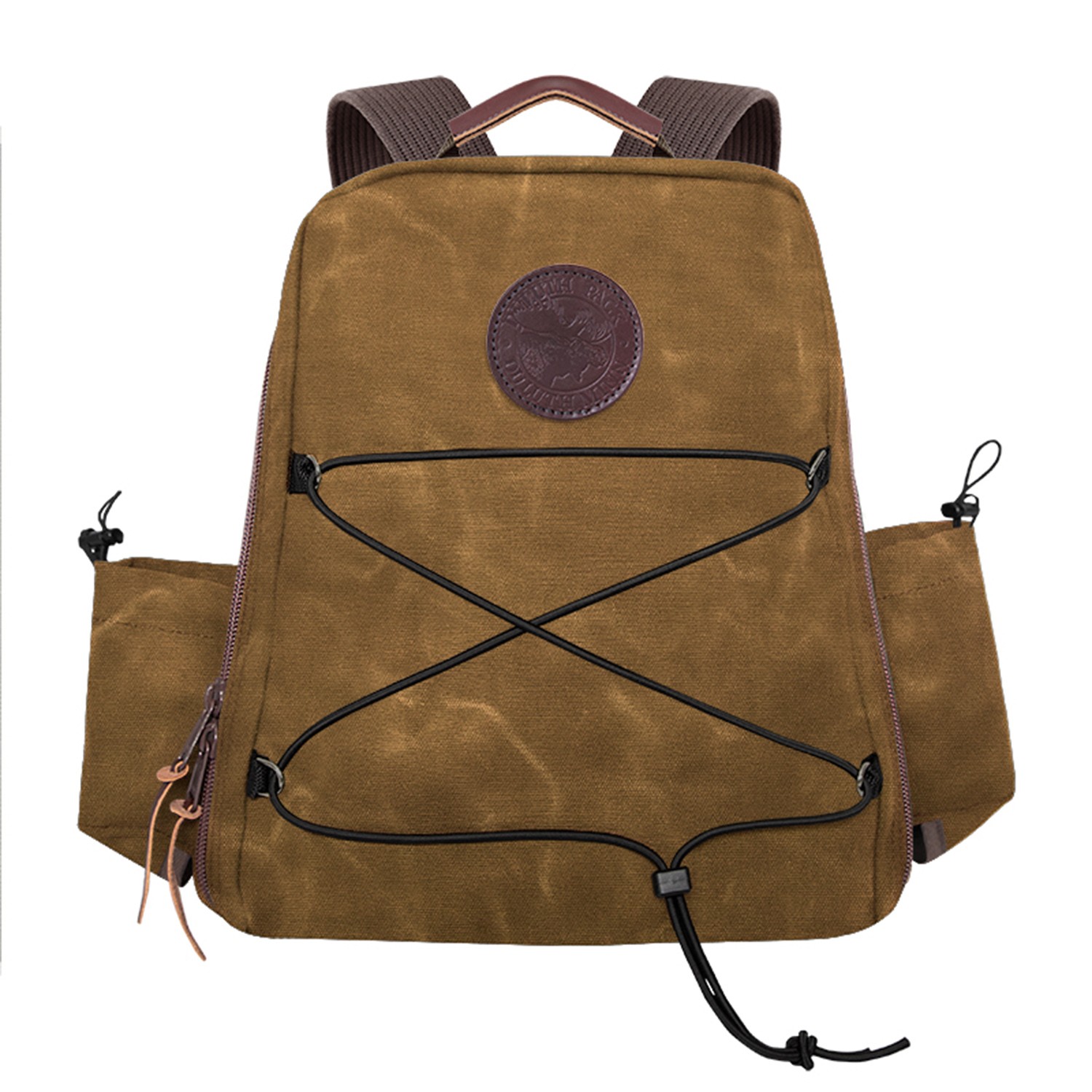 One of our heavy-duty packs that’s ready for any job that’s thrown at it. The Woodsman’s Pack was built to be one of the most versatile packs in your gear closet. This industrial designed pack comes with a full-length zipper for quick access to all your essentials including a laptop, your jacket, hiking equipment, and more. If you need additional space, the front adjustable exterior cording allows for an extra carrying zone alongside the dual water bottle holders on each side of the pack. Made in the USA. Debossed leather patch. Bulk. Complies with Prop 65. 17″ H x 13″ W x 5″ D
