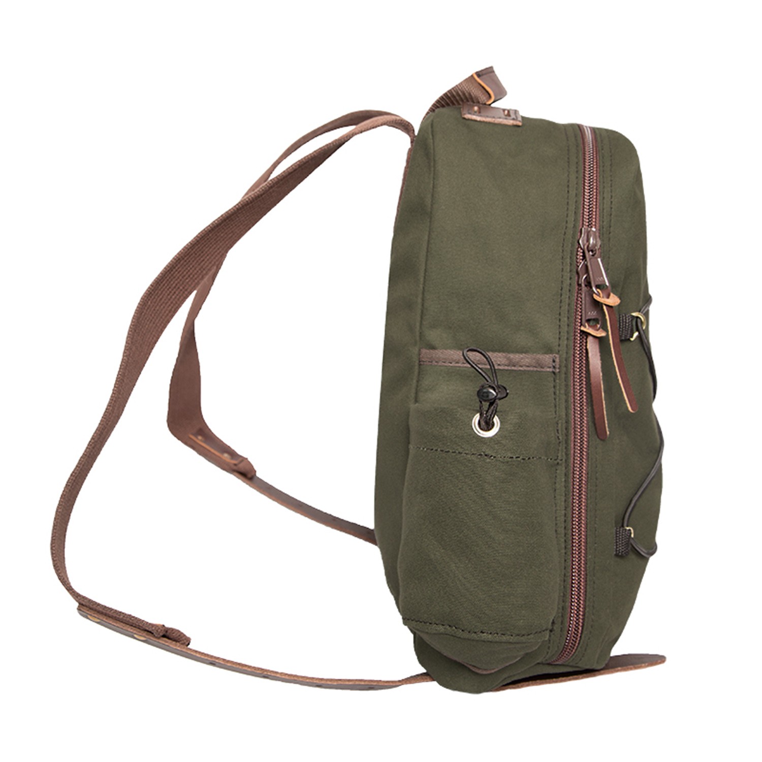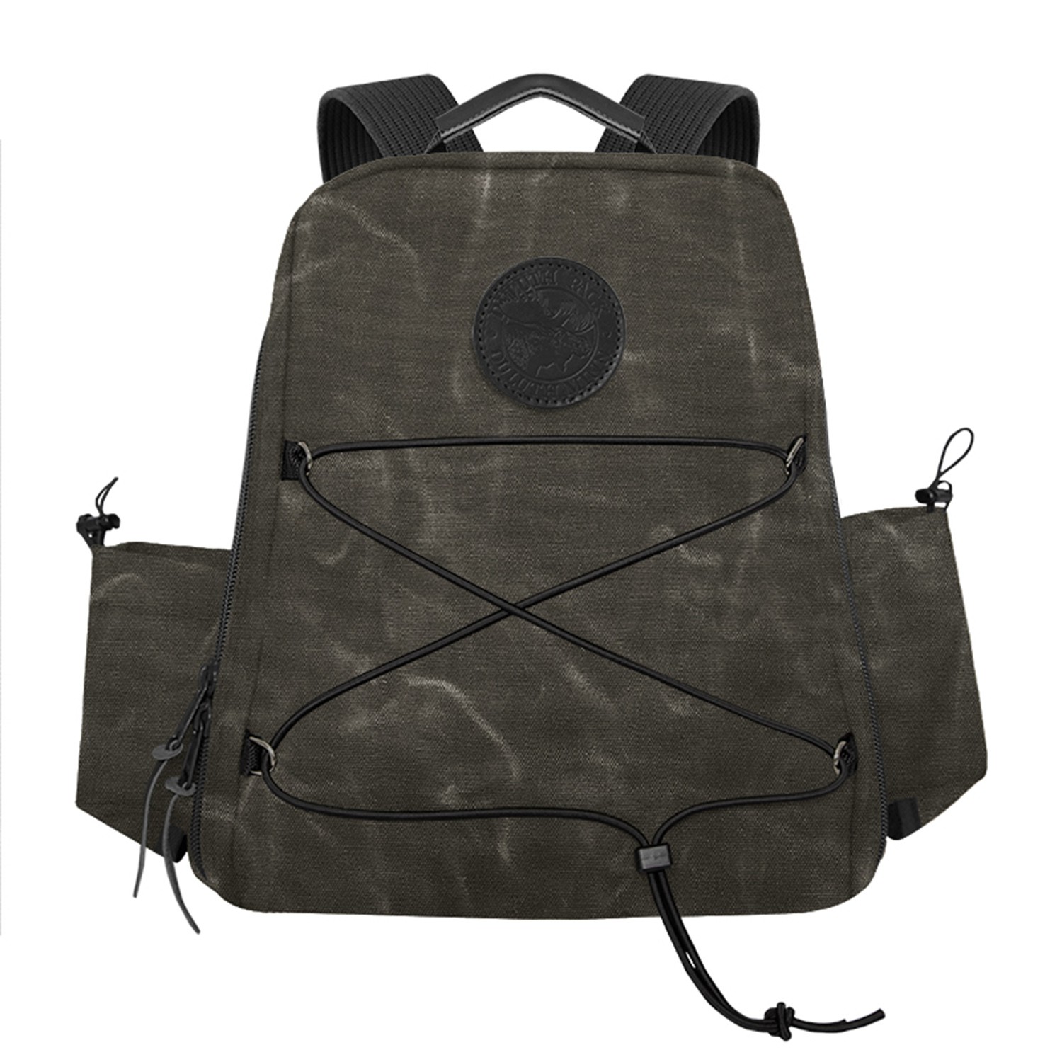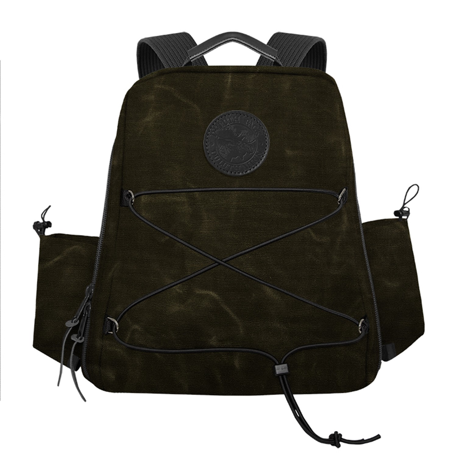 One of our heavy-duty packs that’s ready for any job that’s thrown at it. The Woodsman’s Pack was built to be one of the most versatile packs in your gear closet. This industrial designed pack comes with a full-length zipper for quick access to all your essentials including a laptop, your jacket, hiking equipment, and more. If you need additional space, the front adjustable exterior cording allows for an extra carrying zone alongside the dual water bottle holders on each side of the pack. Made in the USA. Debossed leather patch. Bulk. Complies with Prop 65. 17″ H x 13″ W x 5″ D