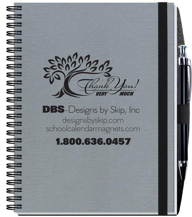 Our Embossed Journals feature sturdy heavyweight paperboard covers with an embossed alligator pattern and 60 Lb. white offset inside sheets with light gray rules or graph printed on both sides. Comes Wire-O bound on the left side with a pen-safe back and a pen. 6 1/2″ W x 8 1/2″ H