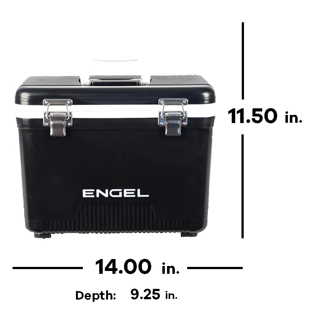 A cooler that doubles as a dry box, the Engel 13 Quart is the ultimate leakproof and air-tight travel companion. Load it up with ice, drinks and snacks or use it to keep your valuables safe. The airtight EVA gasket seal prevents dust or moisture from getting in, saving your electronics, emergency kits, and cameras from potential damage. The metal latches allow for a secure closure so you can confidently pack this in the back of your pickup, your boat, or kayak. 11.5″ L x 14″ W x 9.25″ H