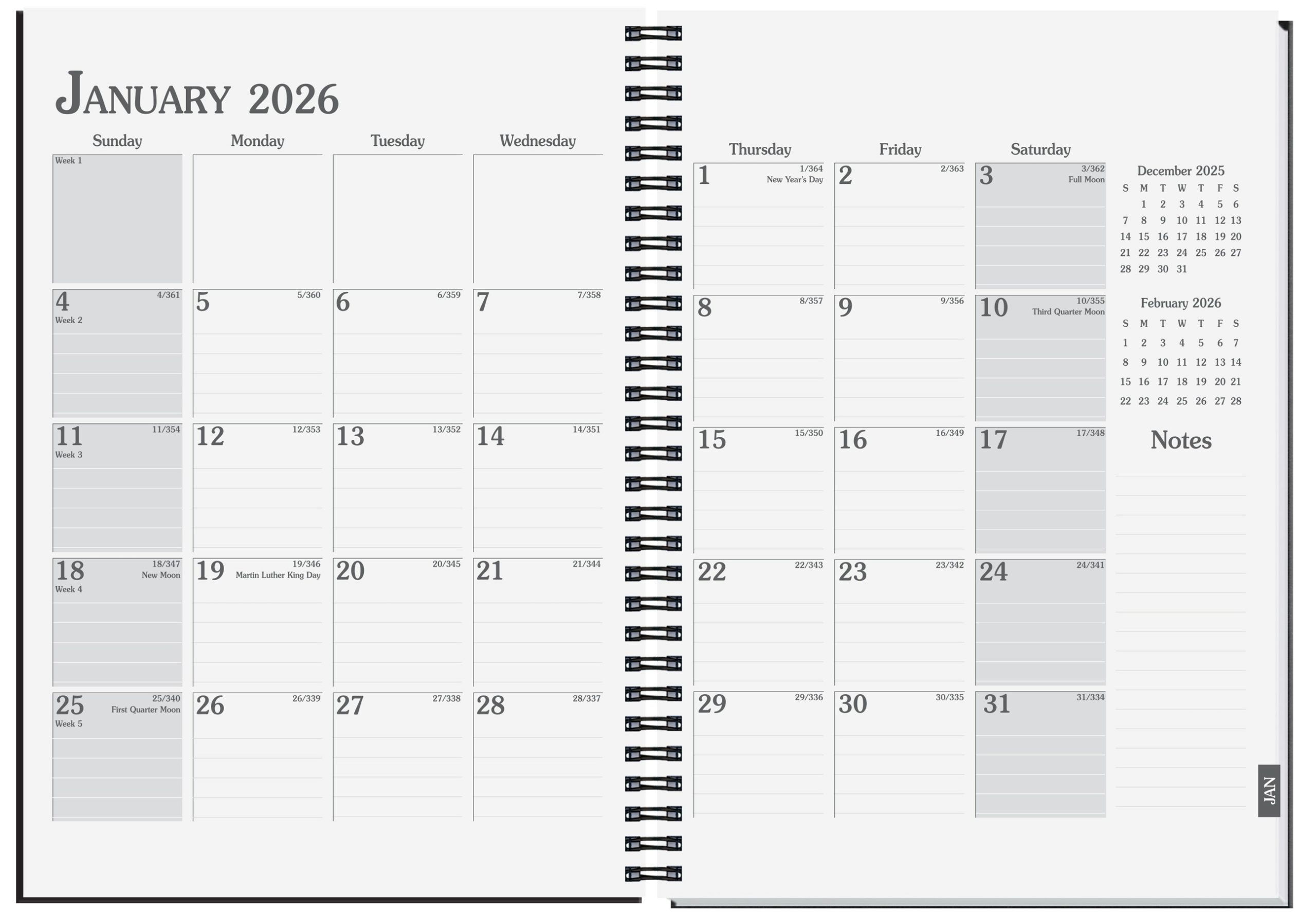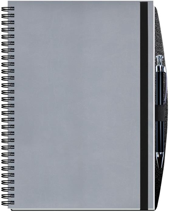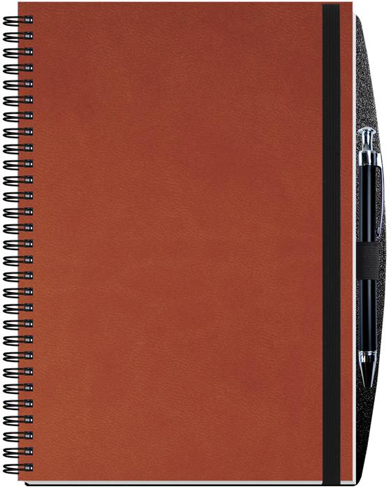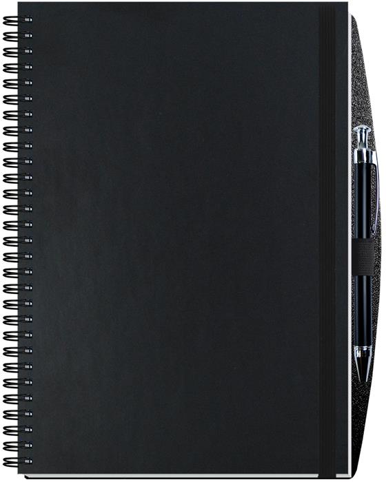 This journal planner features a supple, leather-like material cover bonded to a heavyweight board. Inside sheets are made from 60 Lb. white offset paper and include 14 months (December to January) followed by 50 sheets pre-printed with light gray rules on both sides. Comes Wire-O bound on the left side with a black heavyweight pen safe back and a pen. 7″ L x 10″ W