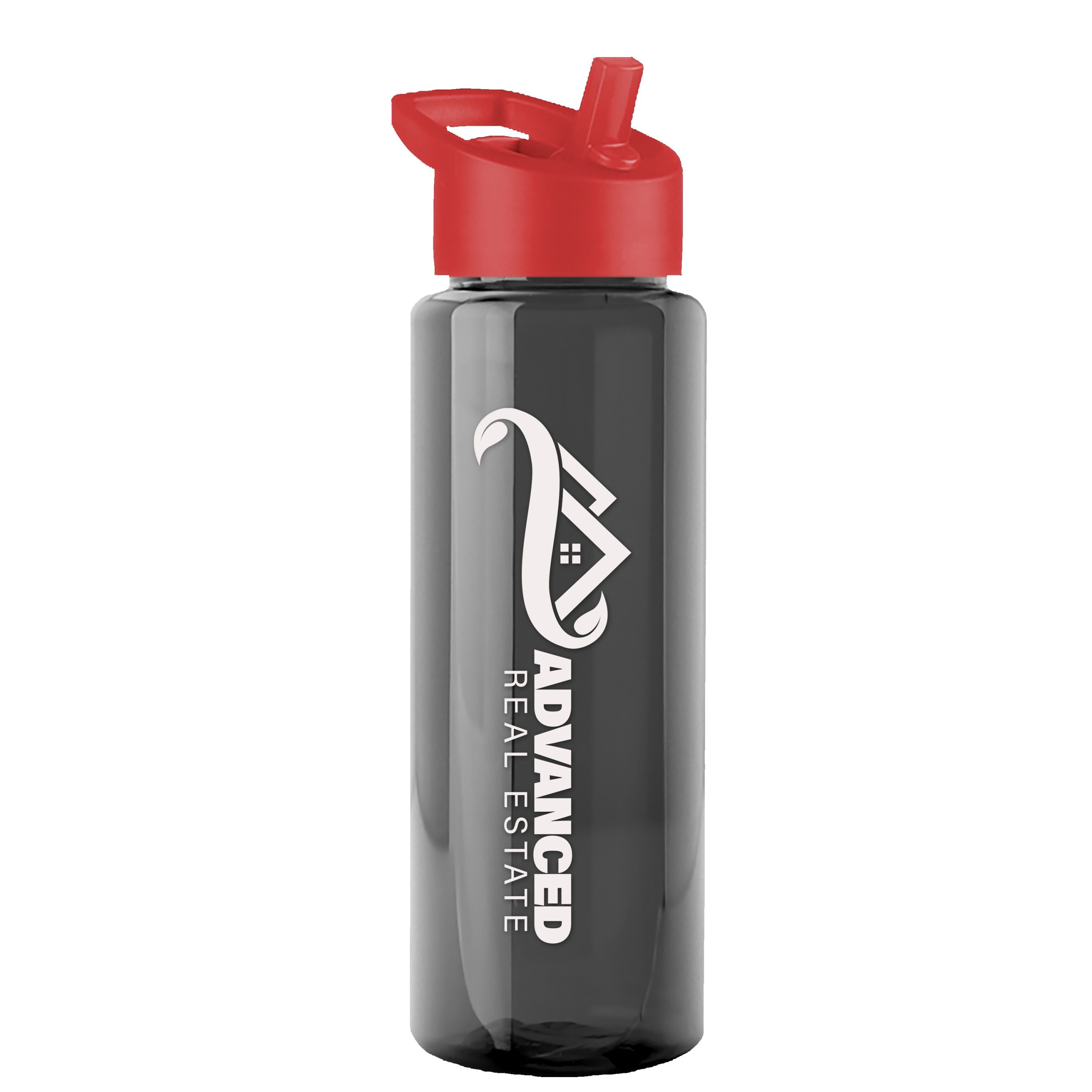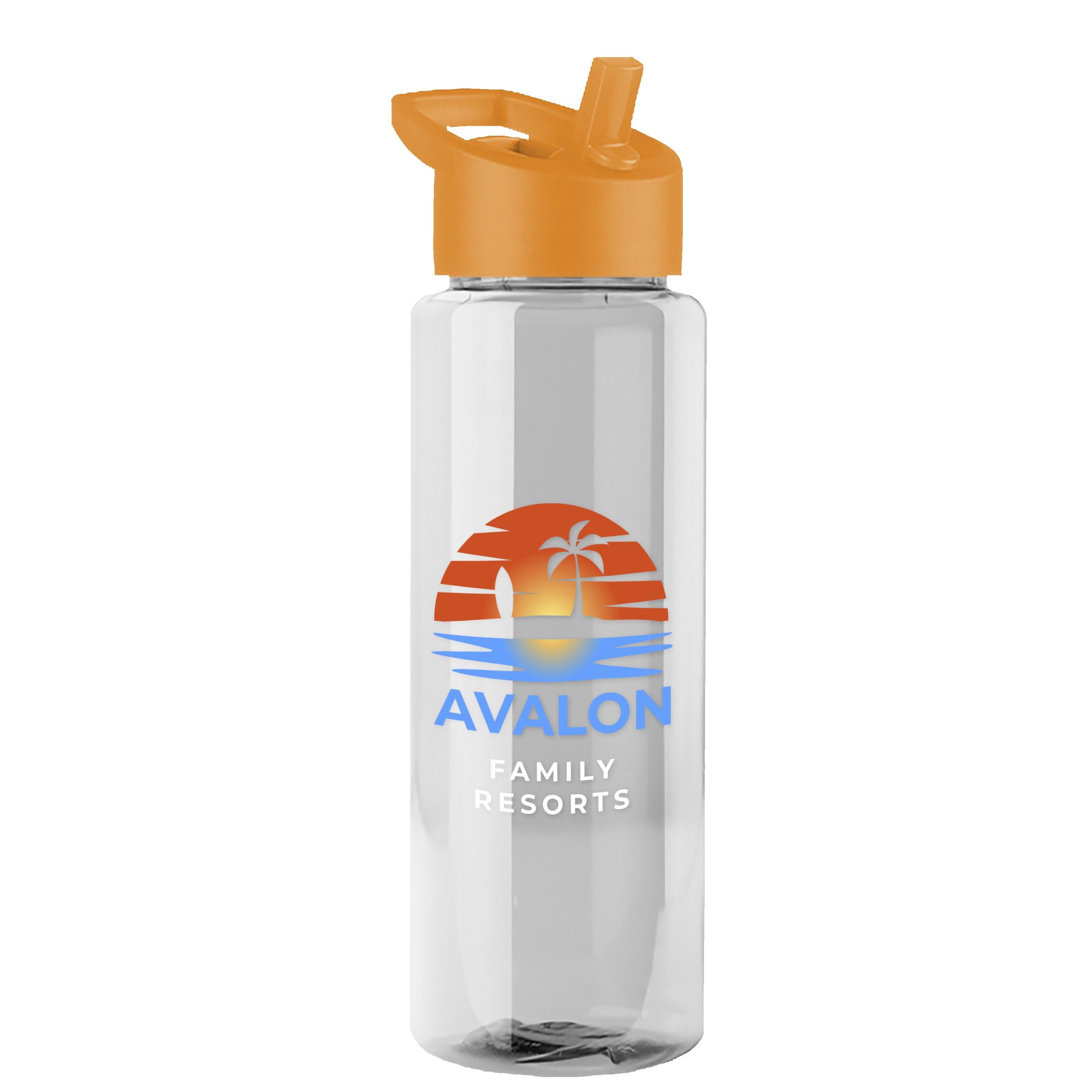 Fuel your day with this 32 oz. transparent straight-wall bottle, designed for outdoor adventures and daily use. The flip-straw lid with molded carry loop offers quick and easy sipping, while the large capacity ensures you stay hydrated wherever you go. Mix and match bottle and lid colors to make it your own, and upgrade with an optional Motivational Measurement imprint on the second side, available at no extra charge when using the same screen print ink color as your side-one imprint. Complies with ANSI, CPSIA, FDA, Prop 65. 3.25″ W x 10″ H x 3.25″ D