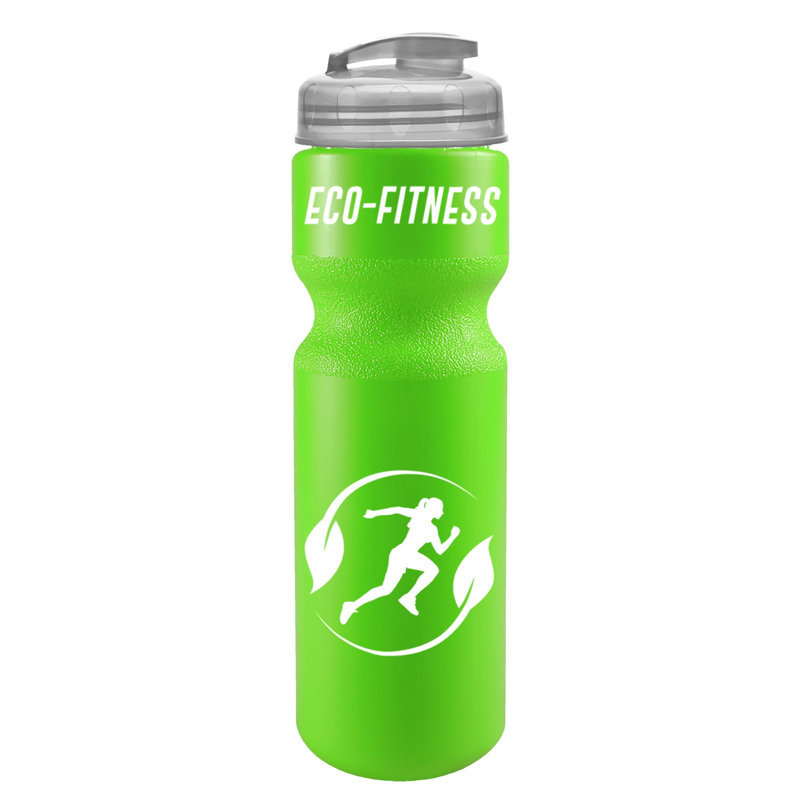 This classic 28 oz. sport bottle features a drink-through, flip-top lid and a contoured, textured design for a secure grip. It fits standard bike cages and offers mix-and-match bottle and lid colors for a personalized look. Up to 40% of the bottle is made from post-industrial recycled HDPE. Complies with ANSI, CPSIA, FDA, Prop 65. 2.875″ W x 9.75″ H x 2.875″ D
