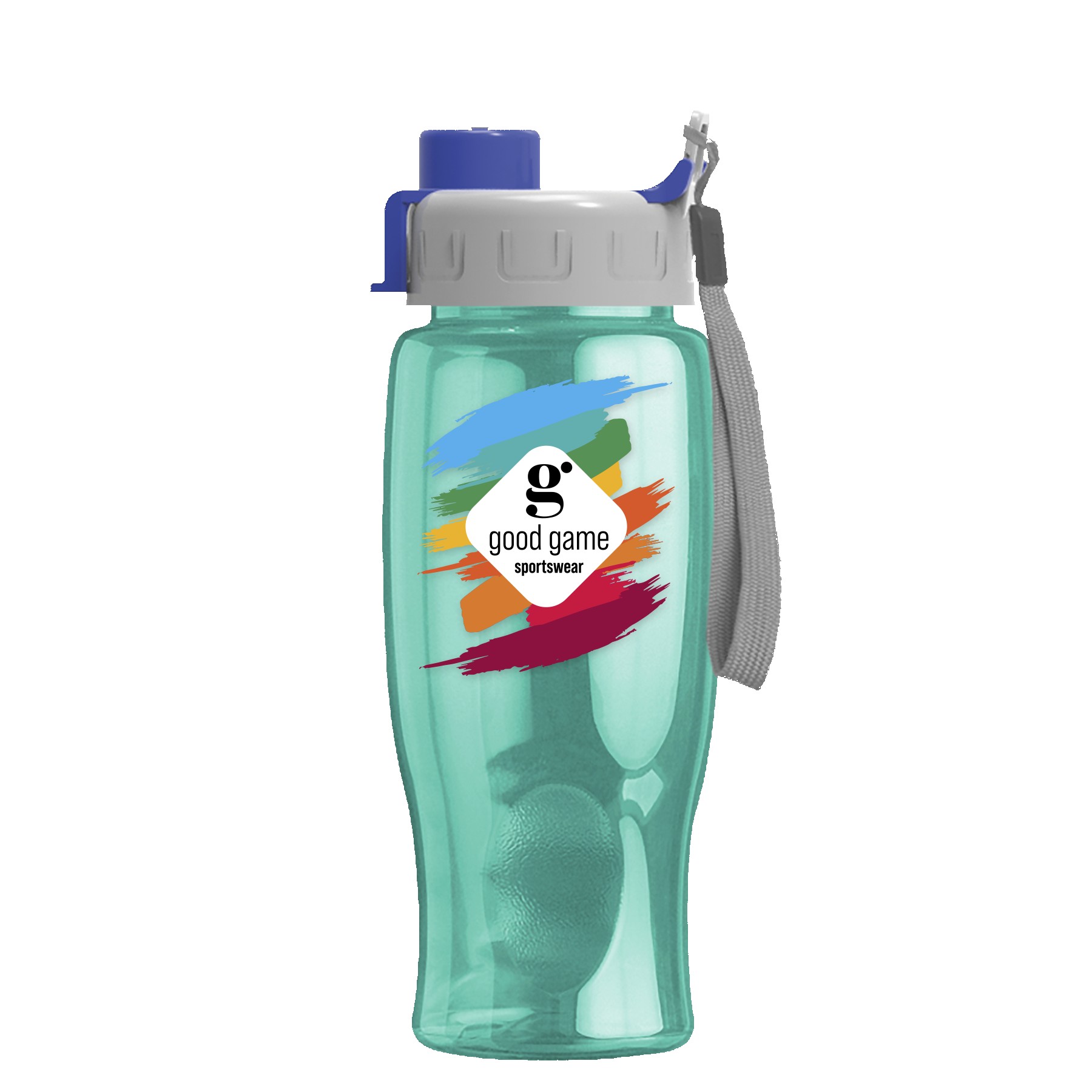 Quench your thirst while on the go with this 27 oz. transparent, contoured bottle, designed with a tapered bottom that fits most cup holders. The sip-through spout with quick-snap cover keeps spills at bay, making it a perfect companion for gyms, outdoor events, or everyday hydration. Mix and match lid and bottle colors for a customized look that matches your brand?s style. Complies with ANSI, CPSIA, FDA, Prop 65. 3.5″ W x 8.875″ H x 3.5″ D