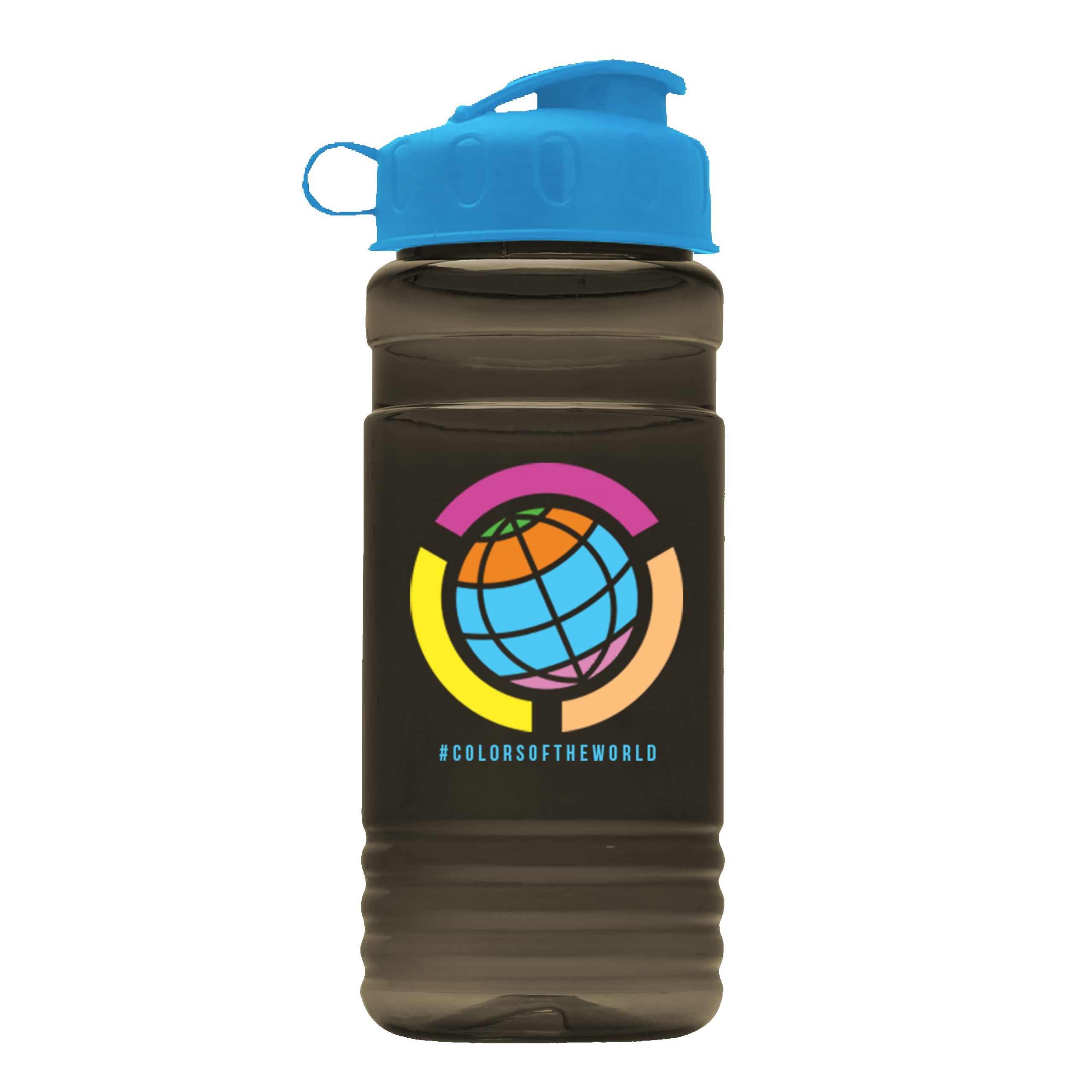 Stand out with this 20 oz. bottle featuring a unique straight-wall cylinder design and compact shape. Molded with 98% post-consumer recycled PET, it?s a reusable, sustainable option for everyday hydration needs. The convenient drink-through, flip-top lid makes it ideal for an on-the-go lifestyle, while mix-and-match lid and bottle color options let you create a unique look. Complies with ANSI, CPSIA, FDA, Prop 65. 2.875″ W x 8″ H x 2.875″ D
