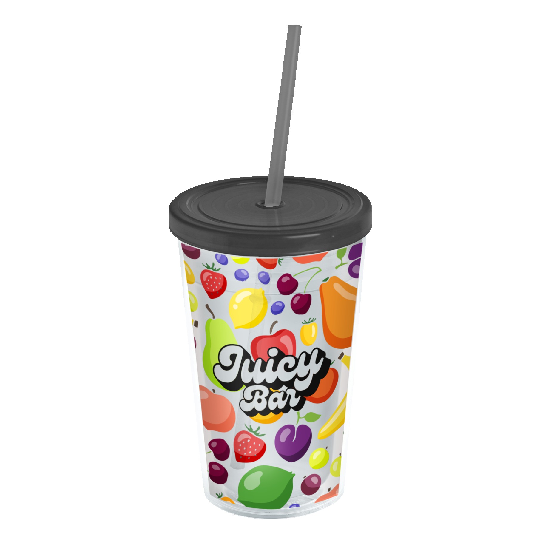 Garyline® Transparent Tumbler with Straw Lid and Full-Color Insert - 16 oz.