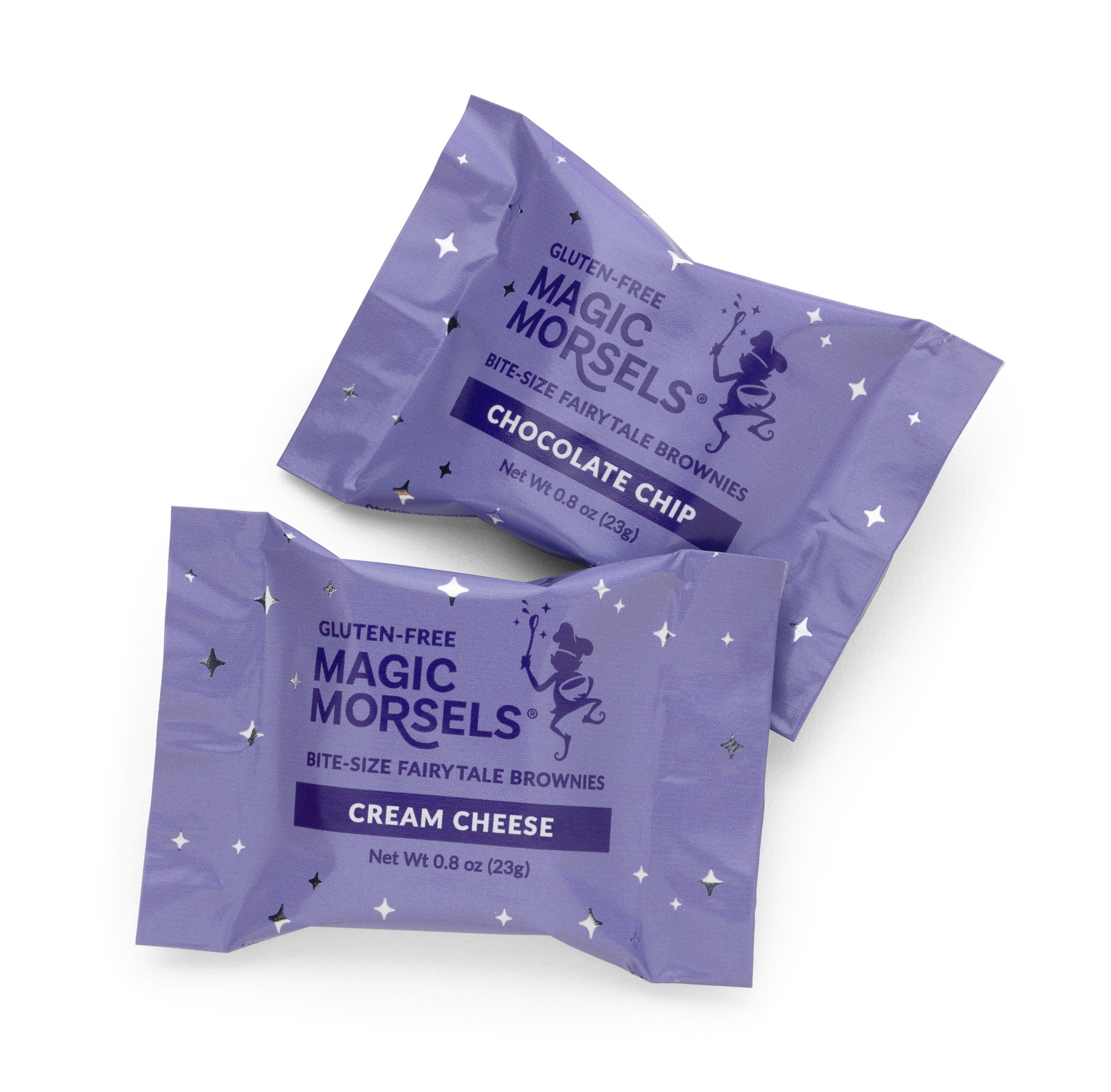 Delivered in an elegant Happy Holidays band, this gluten-free brownie gift includes an assortment of Chocolate Chip and Cream Cheese Magic Morsels. It’s a holiday gift of their dreams. Baked with gluten-free flour, these Magic Morsels have the same rich Belgian chocolate as our signature recipe. This gift includes an assortment of Chocolate Chip and Cream Cheese flavors. All brownies are individually wrapped and certified Kosher. Custom option available. Complies with OK. 7 3/8″ L x 7 3/8″ W x 3 3/8″ H