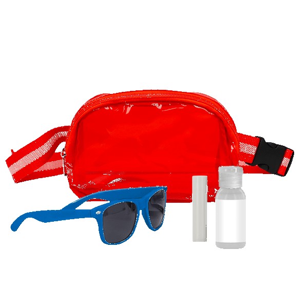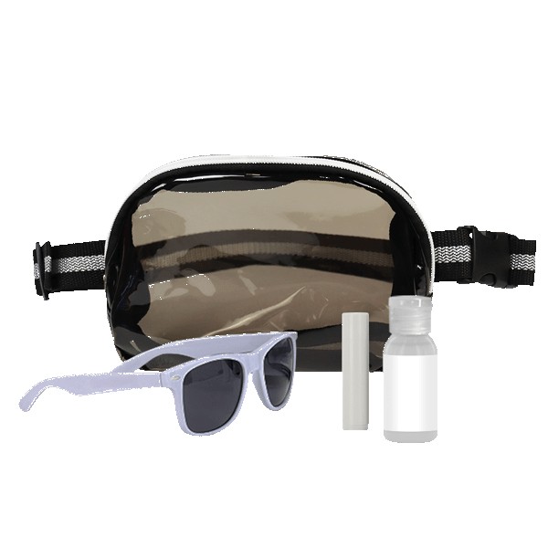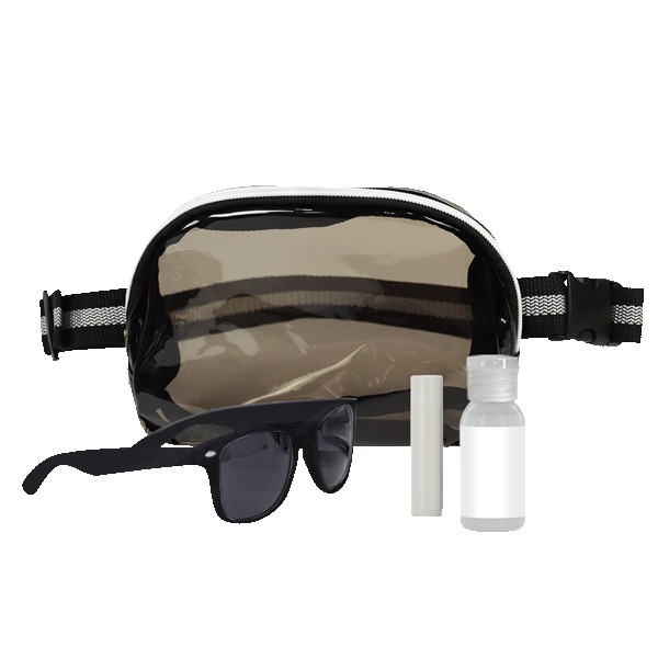 Say hello to your new summer sidekick. The Hello Sunshine Gift Set brings together all the warm-weather essentials in one stylish, grab-and-go package. Front and center is a clear belt bag (TB24707) with a zippered main compartment. This bag is perfect for easy access to your phone, keys, or that emergency snack stash. Inside, you’ll find a pair of lightweight RPET sunglasses (SG24101) with UV400 protection and crisp PC lenses, ready to block the rays while keeping things eco-friendly. There’s also a 1 oz. bottle of SPF 30 broad spectrum sunscreen (ZSUN10) in a clear round bottle (because sunburns are so last season) and a soothing SPF 15 beeswax lip balm (ZLBPWT) in a clean white tube to keep your pout protected. Whether it’s beach days, hikes, or festivals on the agenda, this sunny little set is packed with feel-good, do-good vibes.