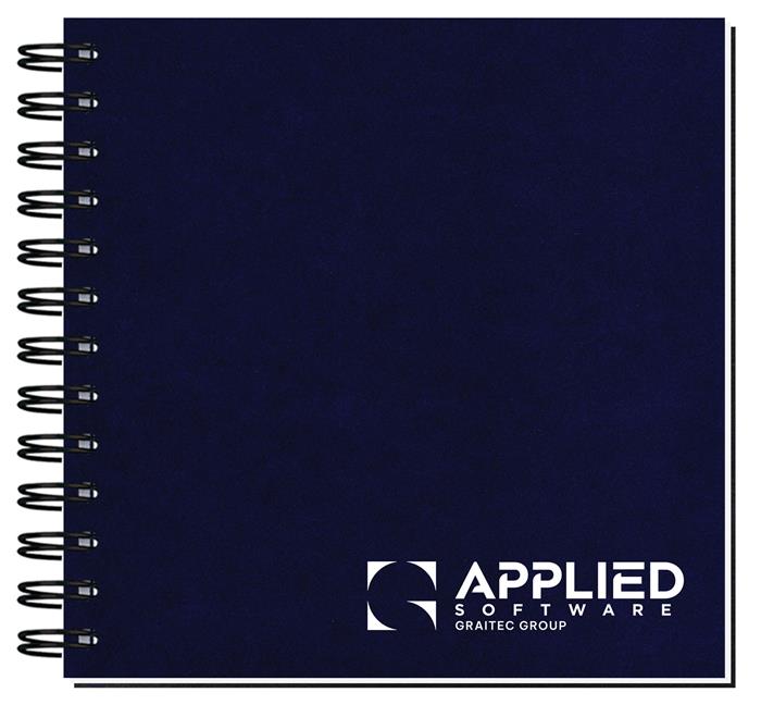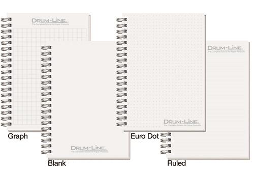 Our Impression Journal features a durable, thick, 50 pt. smooth cover stock and 80 pages of recycled 60 Lb. white offset inside sheets with black logo and rules, graph, or euro dot printed on the front of each sheet. Recycled symbol is printed in the lower right corner and the back of each sheet is blank. Comes Wire-O bound on the left side in black. 7″ W x 7″ L