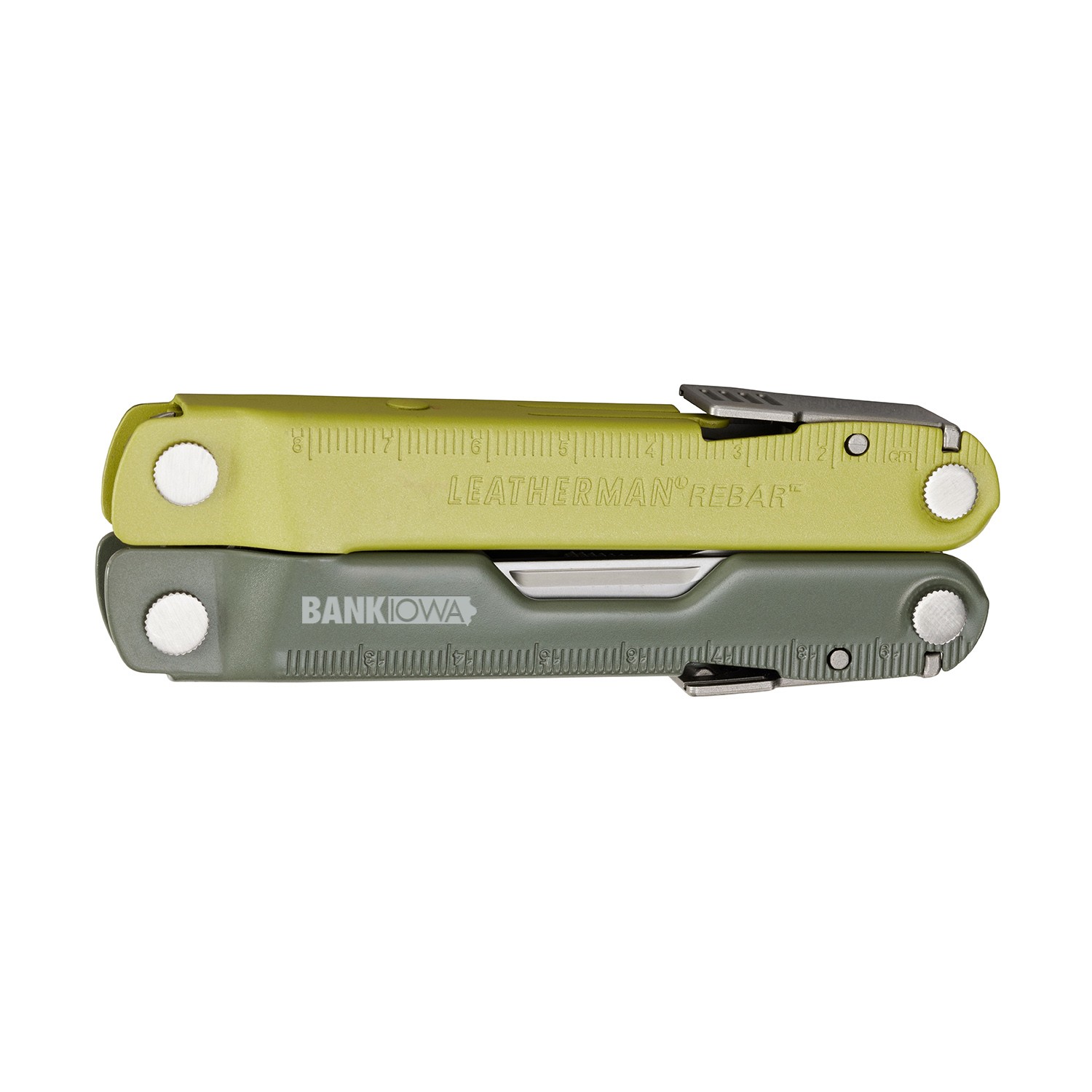 The Rebar in the color Mossy Slate is sure to be an instant hit on job sites, and home-projects the world over. 4″ long when closed. 17 Tools: Knife, serrated knife, needlenose & regular pliers, electrical crimper, wire stripper, replaceable wire cutters, file, saw, ruler, three screwdrivers, awl, bottle & can opener, wood/metal file. Laser Engraved. Boxed. Made in the USA of US & Foreign Components. Also available in Black, Stainless, Coyote Tan, Burnt Sienna, and Heathered Cranberry. Made in the USA of US & Foreign Components. (90–95% of materials from USA, 5–10% from imported materials—None from China.). Complies with Prop 65. 0.65″ H x 1.18″ W x 4″ L