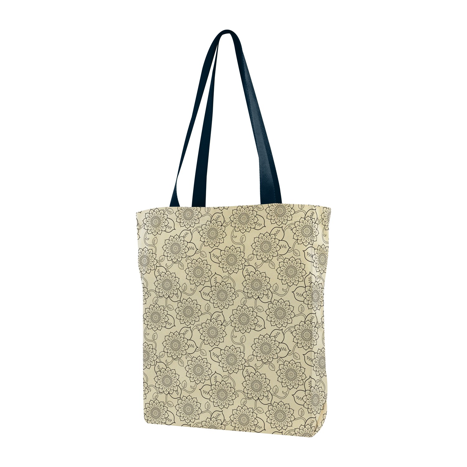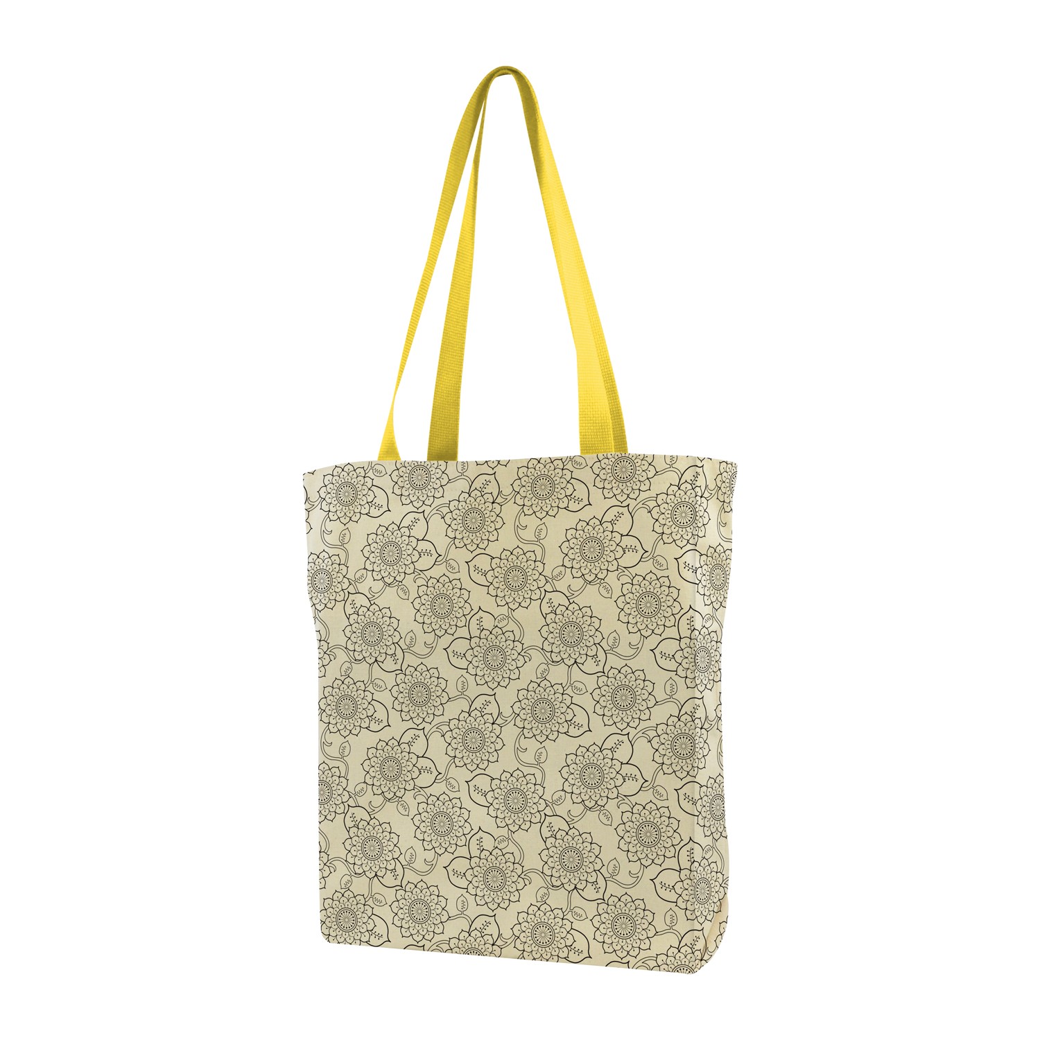 Your unique gusseted cotton tote is sure to get attention. Customize it with edge-to-edge printing of up to four colors plus choose from over 10 handle colors. Because it?s assembled in the USA, you can quickly start putting this reusable bag to good use on weekend outings and shopping trips. 16″ W x 15.5″ H x 5″ D