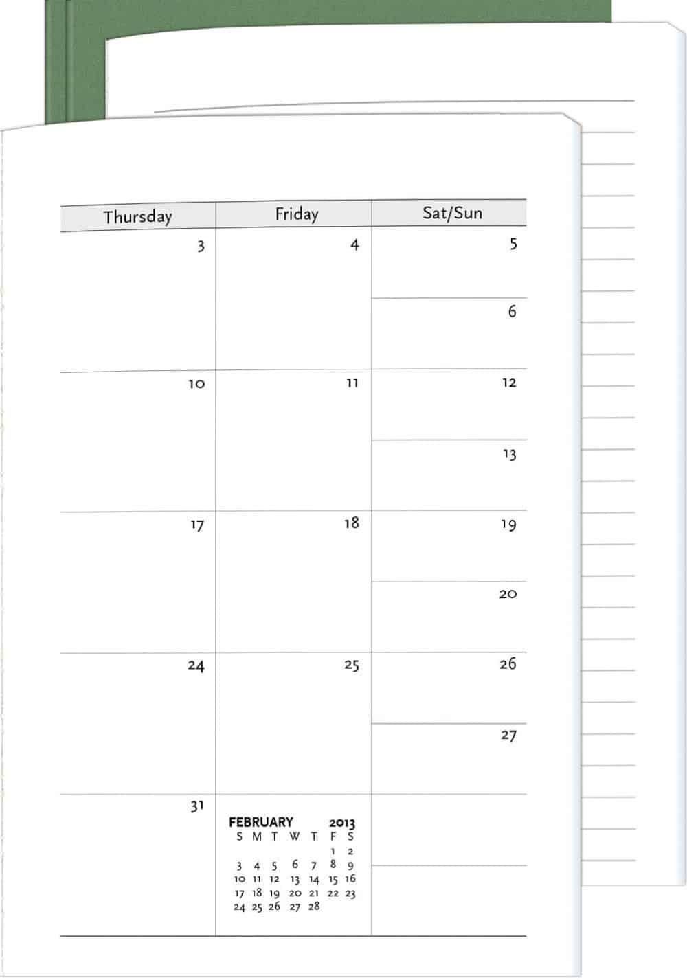 Get a planner and journal in one convenient hybrid perfect-bound solution. Select from six rich, Textured Linen, wraparound covers and choose a one-color/location foil imprint or blind deboss. This perfect-book has a 12-month planner (you choose the month to start with) and 70 sheets of premium, opaque writing paper. Made in the USA. Complies with FSC. 7″ W x 10″ H