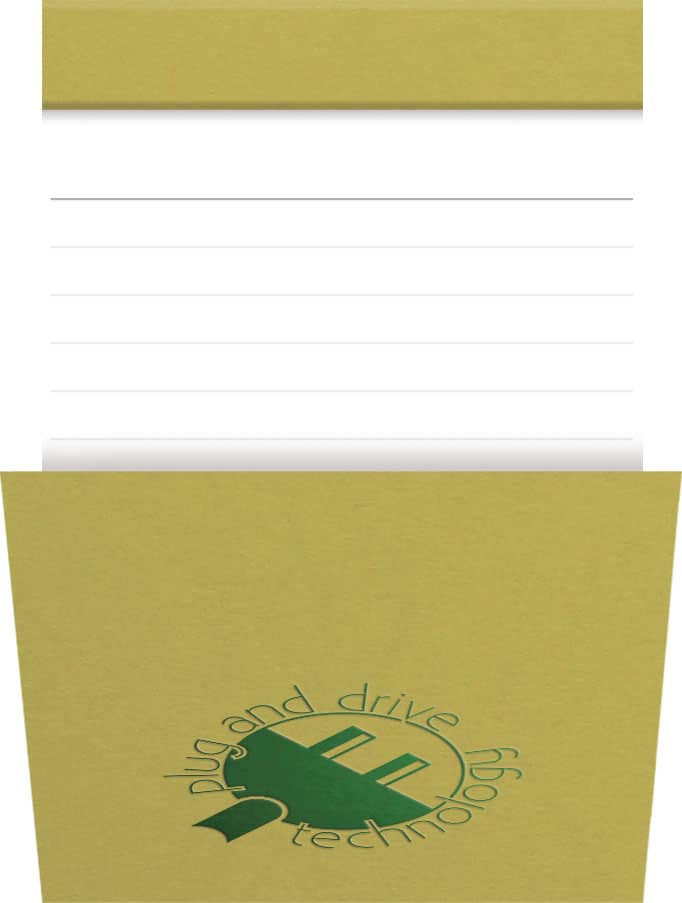 Flexible, wraparound paper covers with top-bound, glued spine. Includes a 1-color foil imprint. 50 sheets of perforated, lined filler. Made in the USA. Complies with FSC. 4″ W x 6″ H x 0.3″ D