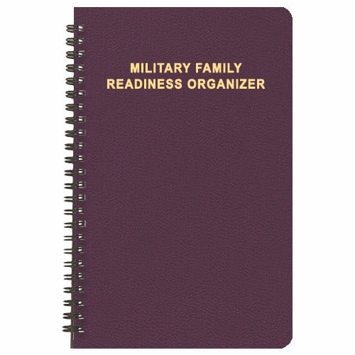 Wire bound organizer is for keeping Military Data and Family Information and necessary family information in the event of mobilization. 5 1/2″ W x 8 1/2″ H