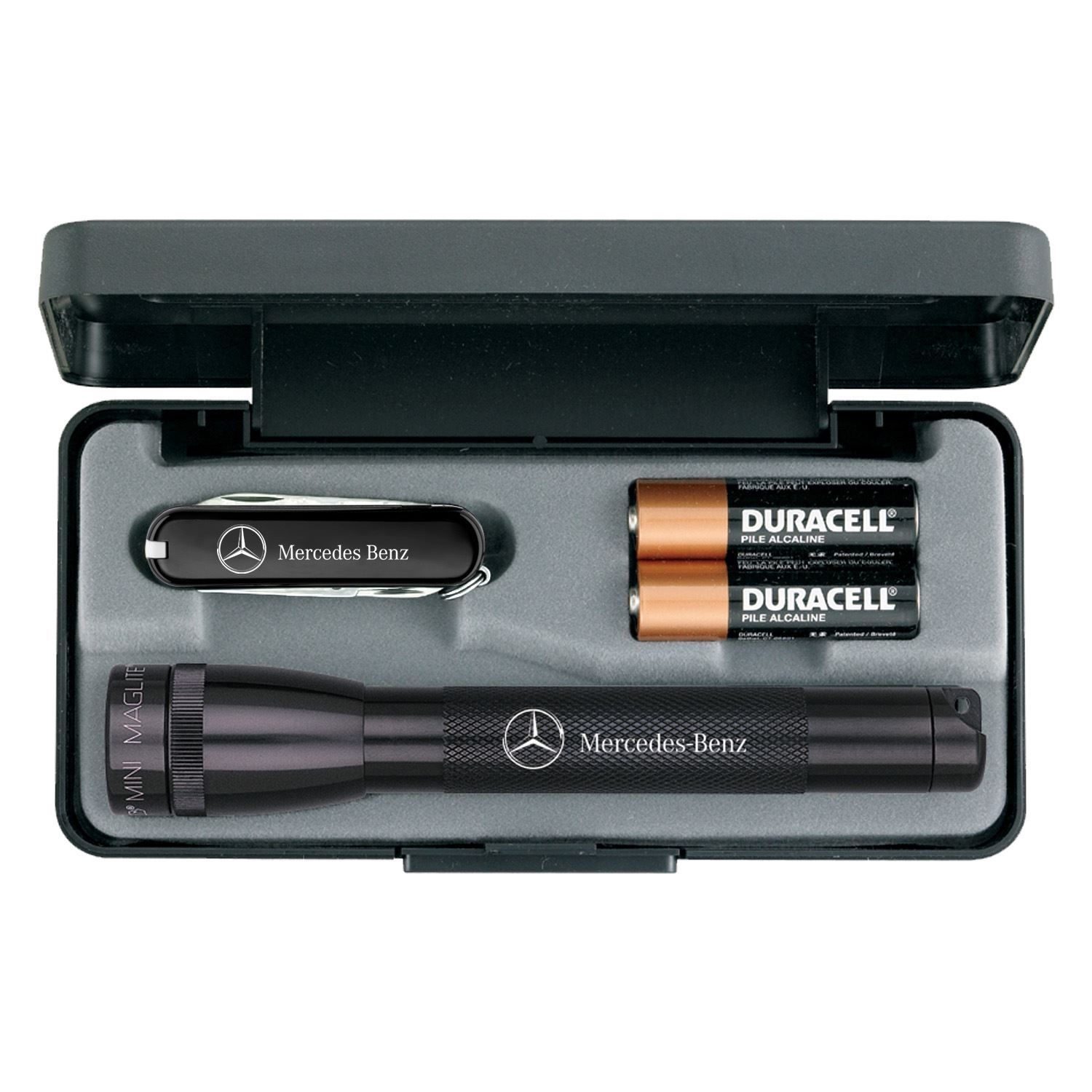 Two great brand names packaged together in a sleek presentation box. The 5.75″ M2A Mini Maglite comes with 2 “AA” batteries, shines brighter than flashlights of equal battery resources, and is available in black, blue, red, or gray. Victorinox’s most popular pocket knife the Classic has a 2 1/4″ Handle, is available in a multitude of colors and features a blade, scissors, nail file with screwdriver tip, key ring, tweezers, and toothpick. Laser engraved on Mini-Maglite. Pad print or full color print on knife. . Complies with Prop 65. 2 1/4″ L
