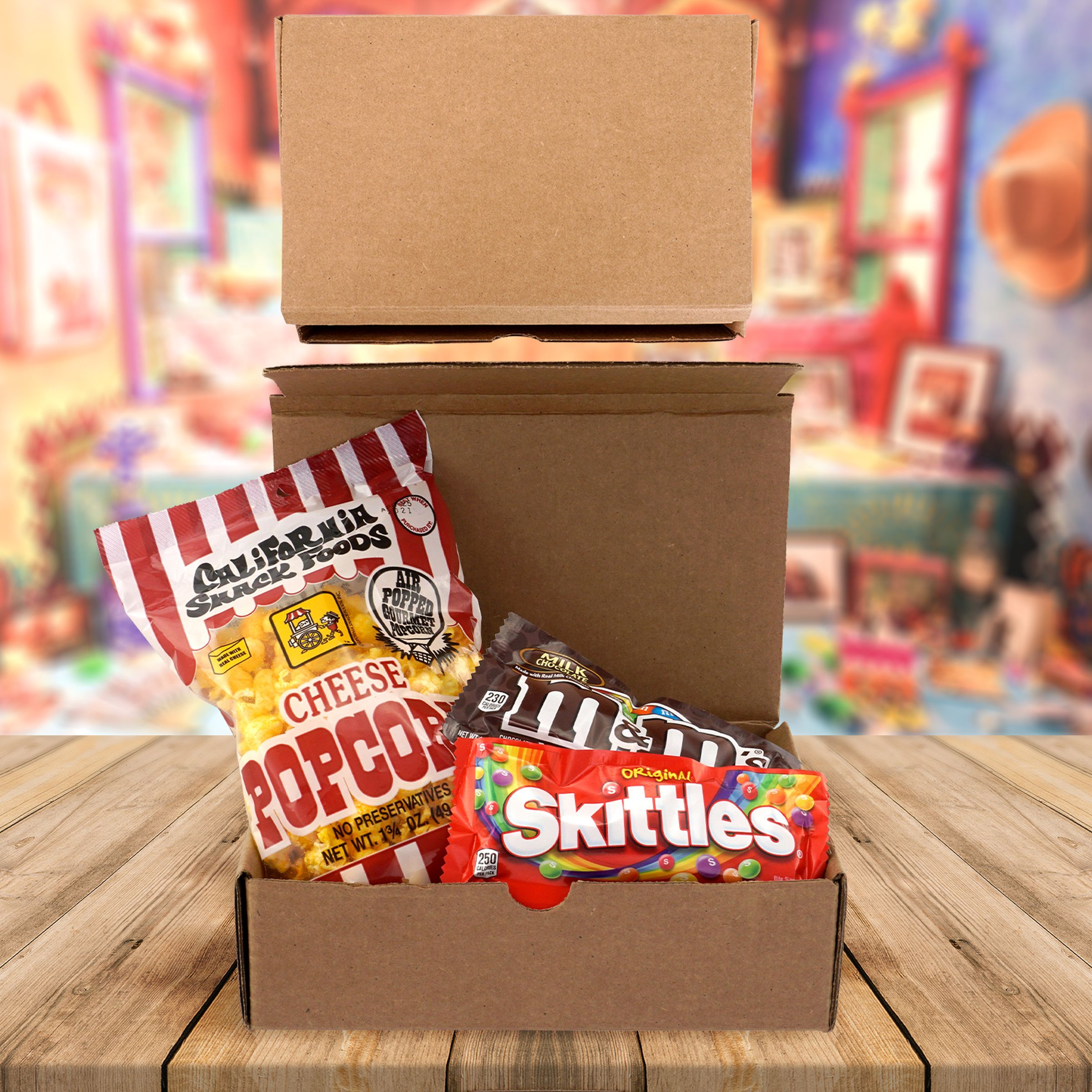 Elevate your snacking experience with our specially curated package: a premium shipping-grade mailer box containing a delectable assortment of treats. Indulge in a bag of savory cheese popcorn, along with a package each of the classic candies Skittles and M&M’s. Complies with Prop 65. 9″ L x 2.75″ W x 6.5″ H