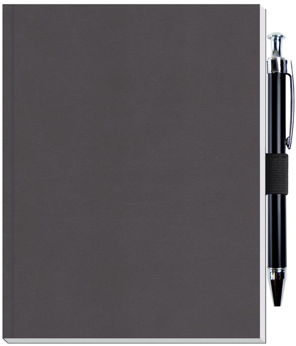 Our Perfect Journal features 100 60 Lb. white offset sheets with light gray rules or graph printed on both sides. Comes Perfect bound on the left side with a black pen patch and a pen. Choose between our flexible, soft leather-like Metro cover or a flexible, textured metallic paper cover. 5″ W x 6.5″ H