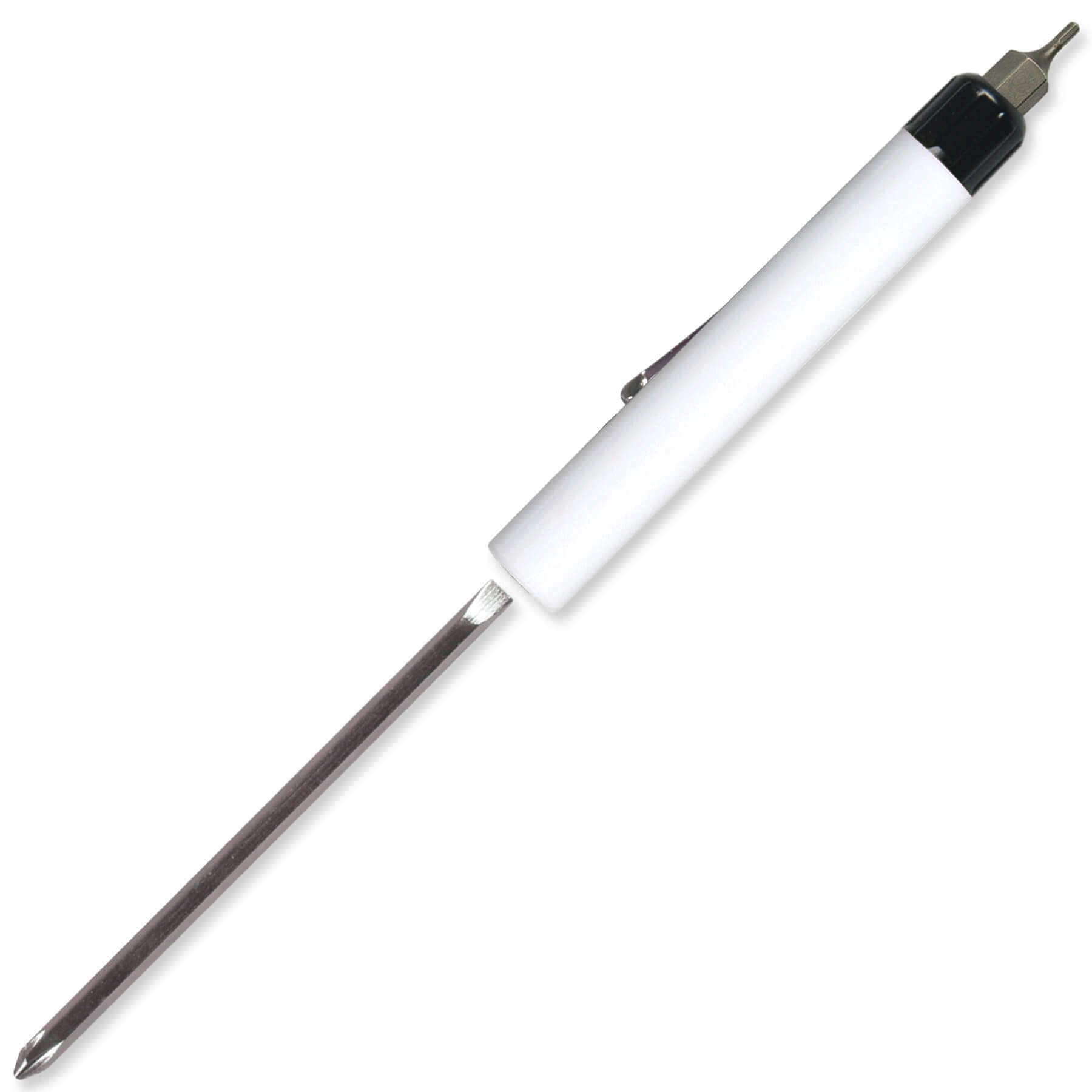 Pocket screwdrivers are appreciated and used by everyone and will be kept for a long time for extensive brand exposure. 1/8″ Flat Tip. #0 Phillips Tip. Metal Pocket Clip. Nickel plated, heat treated, tool quality tempered steel reversible blade. Please specify Button/Top color on order. 6″ W x .5″ H x .44″ D