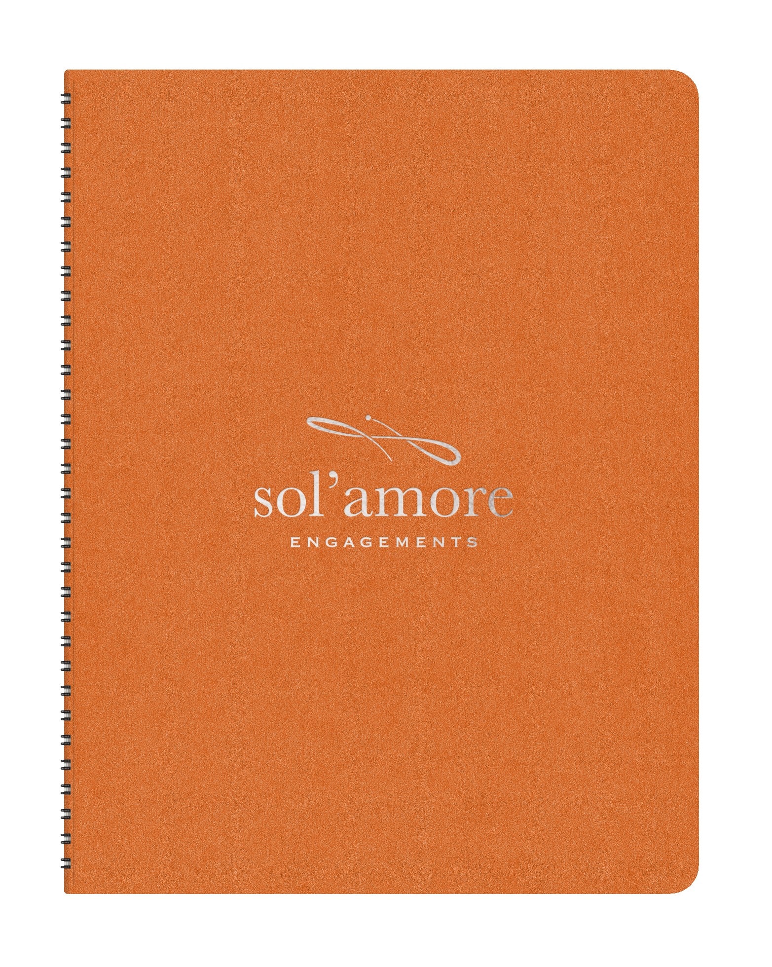 Flexible, wraparound covers with rounded corners; choose between Prestige (GlossMetallic or Linen). Includes a 1-color foil imprint or deboss imprint on front cover, 70 sheets lined filler. Black wire binding is standard (more color available). Complies with FSC. 8.5″ W x 11″ H
