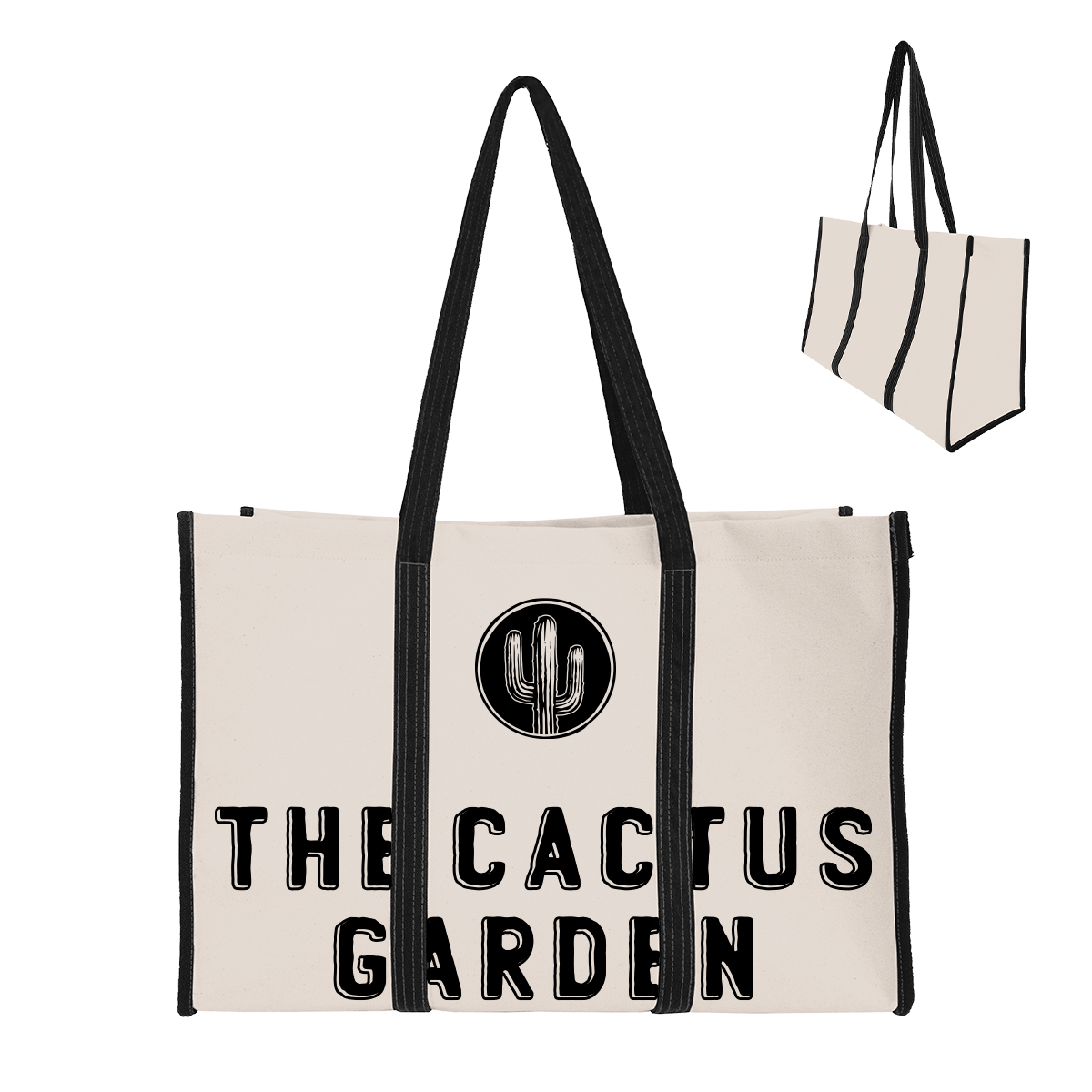 Made Of 14 Oz. Recycled Natural Canvas With 10 Oz. Canvas Handles And Trim. 475 GSM. Large Open Main Compartment. 9″ D x 19″ W x 13″ H