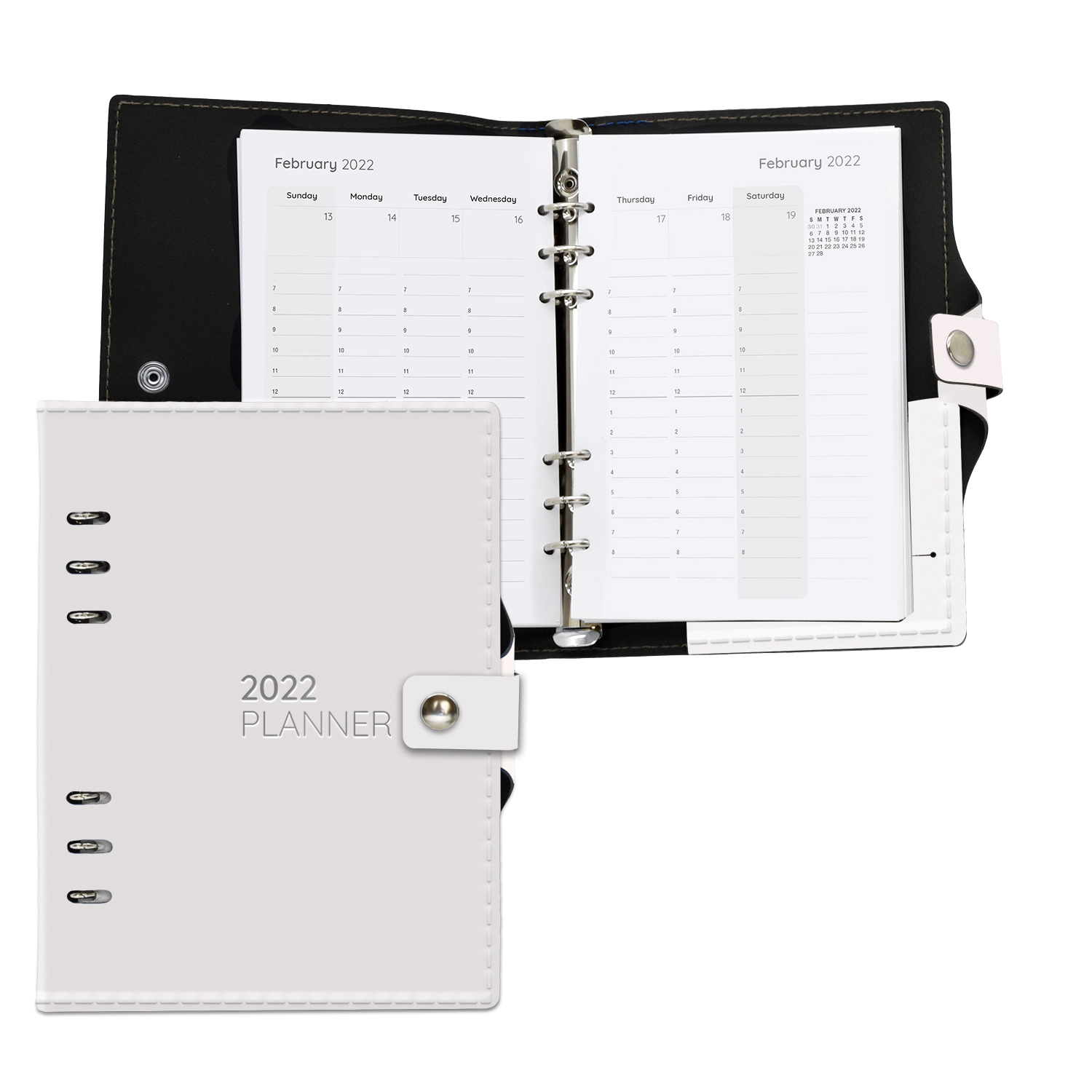 Premium bonded leather (40 Pt.) or recycled (40 Pt.) recycled Leather sleek cover. 75 sheets in size of 5.25″ x 8.25″ , printed with ecological inks. 6-ring binding compatible with most Organizers in the market; many refills available (pockets, dividers, ruler…) as option. Complies with Prop 65. 5.5″ W x 8.5″ L