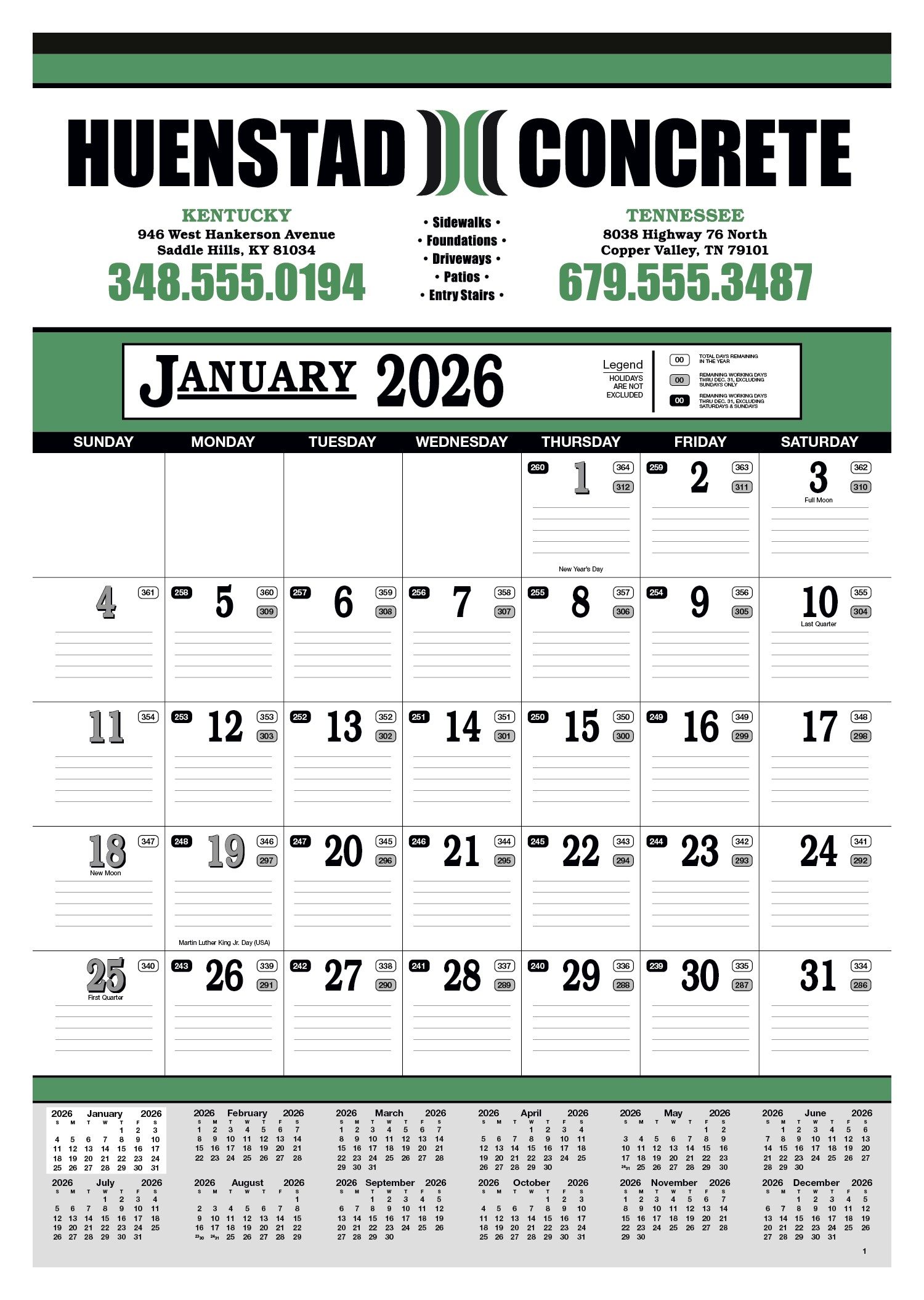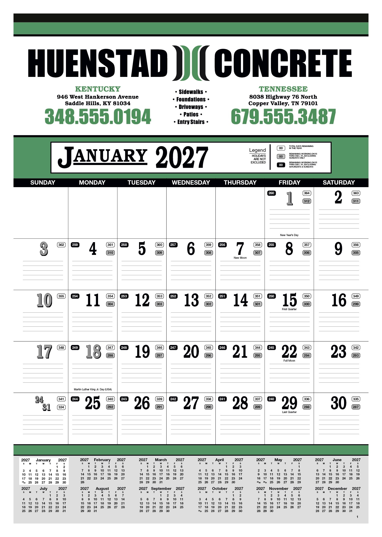 Stay organized with this 13-sheet calendar, featuring a full calendar along the bottom for quick reference. Lined date blocks make it easy to keep track of dates and stay on top of your schedule. The SFI® label means that materials used for this product have been responsibly sourced. 19″ W x 27″ H