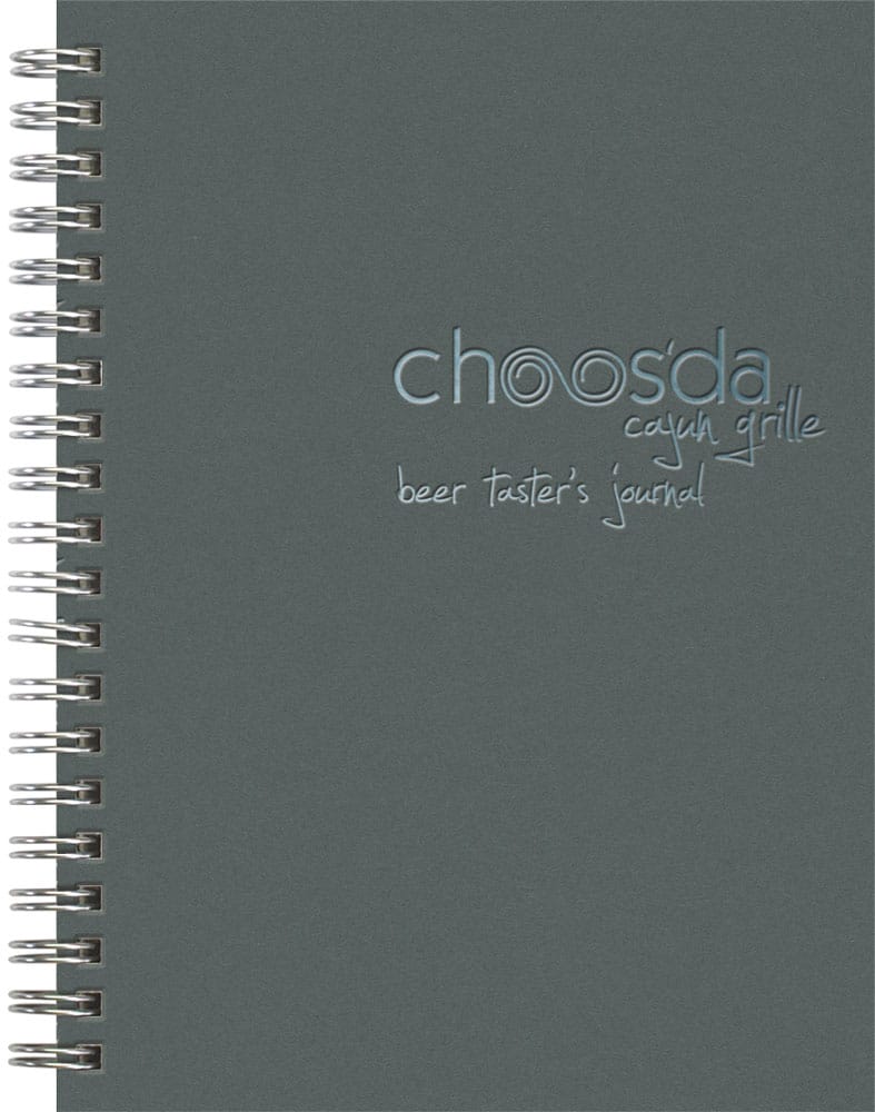 Preparing a toast? How about three cheers for the LagerJotter™! One full-color, double-sided insert explaining beer color variations, and (2) double-sided,1-color inserts with even more beer tasting information for enthusiasts and connoisseurs alike, and 50 sheets of beer-scoring filler to rate and record each different brew. Select paperboard cover from the Classic Cover Series 1. Includes a one color/location foil imprint on the front cover and black binding wire is standard. Complies with FSC. 5″ W x 7″ H