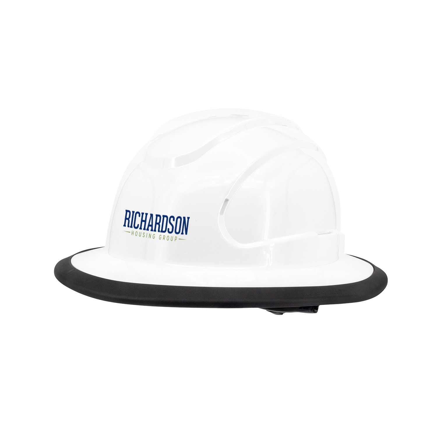 High-density polyethylene (HDPE) full-brim shell provides dependable impact resistance with extended sun and weather protection—ideal for demanding jobsite environments. Six-point ratchet suspension evenly distributes impact force to reduce strain and enhance comfort, with quick ratchet adjustment that allows fast sizing changes even when wearing gloves. Pillowed brow pad and padded nylon crown straps deliver a secure, cushioned fit. Type I Class G & E certification meets ANSI/ISEA Z89.1-2014 (R19) and CSA Z94.1-15 safety standards. 1-4 Color pad print on the front, back and or side. Bulk. Non vented. 6″ H x 9.5″ W x 11″ L