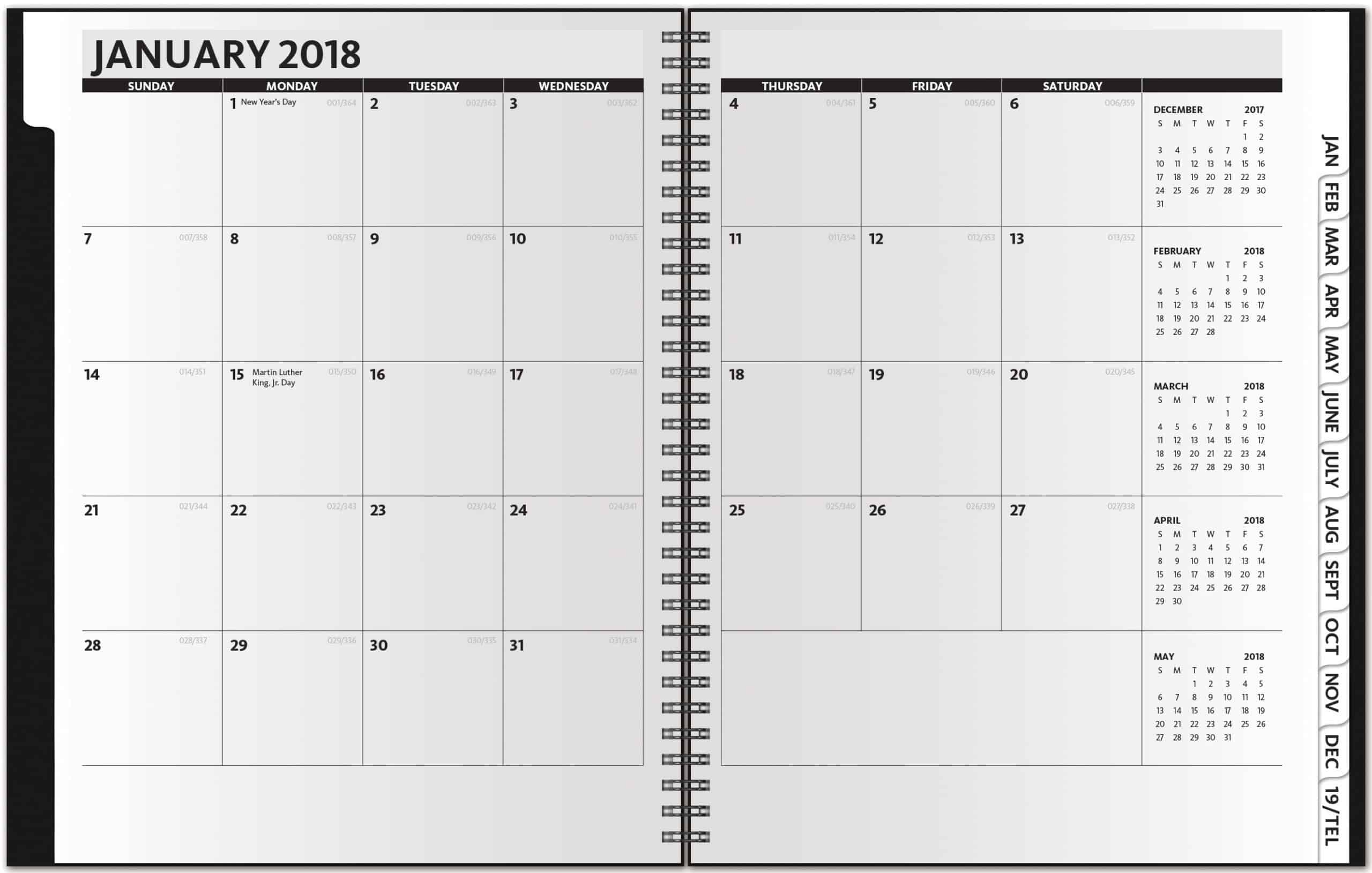 Vertical Monthly Planner…As our most popular planner, the Analyst boasts large date blocks for easy organization and die-cut tabs for quick reference to make this the ideal planning tool for fast, efficient date keeping. It features 32 pages (14 months), full year-in-view, 4-year planning spreads, area code map, contact page, and 15 blank memo sheets in back. This version has a wraparound leatherette cover, one-color foil imprint and black binding wire. Complies with FSC. 8.5″ W x 11″ H
