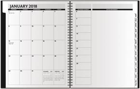 Vertical Monthly Planner…TheDirectorâ„¢ offers spacious date blocks and an extensive note and memo space. Your clients will have room to lay out each day’s tasks in detail. Features include die-cut tabs for quick reference, 32 pages (14 months), full year-in-view, 4-year planning spread, area code map, contact page, and 15 blank memo sheets. Classic Cover Series 1 paperboard front and back cover, a one-color foil imprint or blind deboss and black wire binding is standard. Optional PenPort & Pen. Complies with FSC. 8.5″ W x 11″ H
