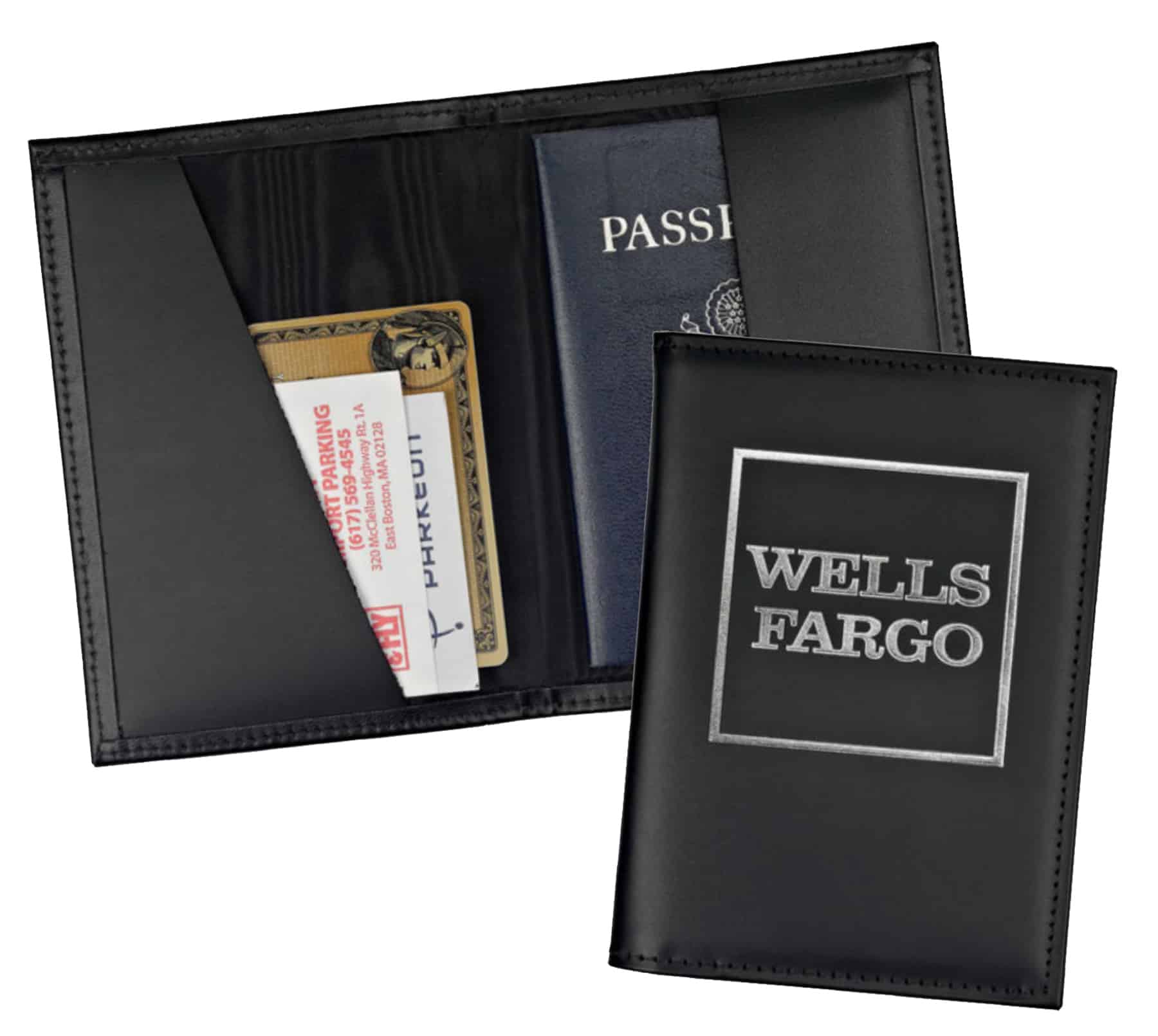 Convenient pocket size leather holder designed to carry a standard passport. Made in the USA with French turned edges, silk moire’ lining and leather inside pockets. 4 1/4″ W x 5 3/4″ L