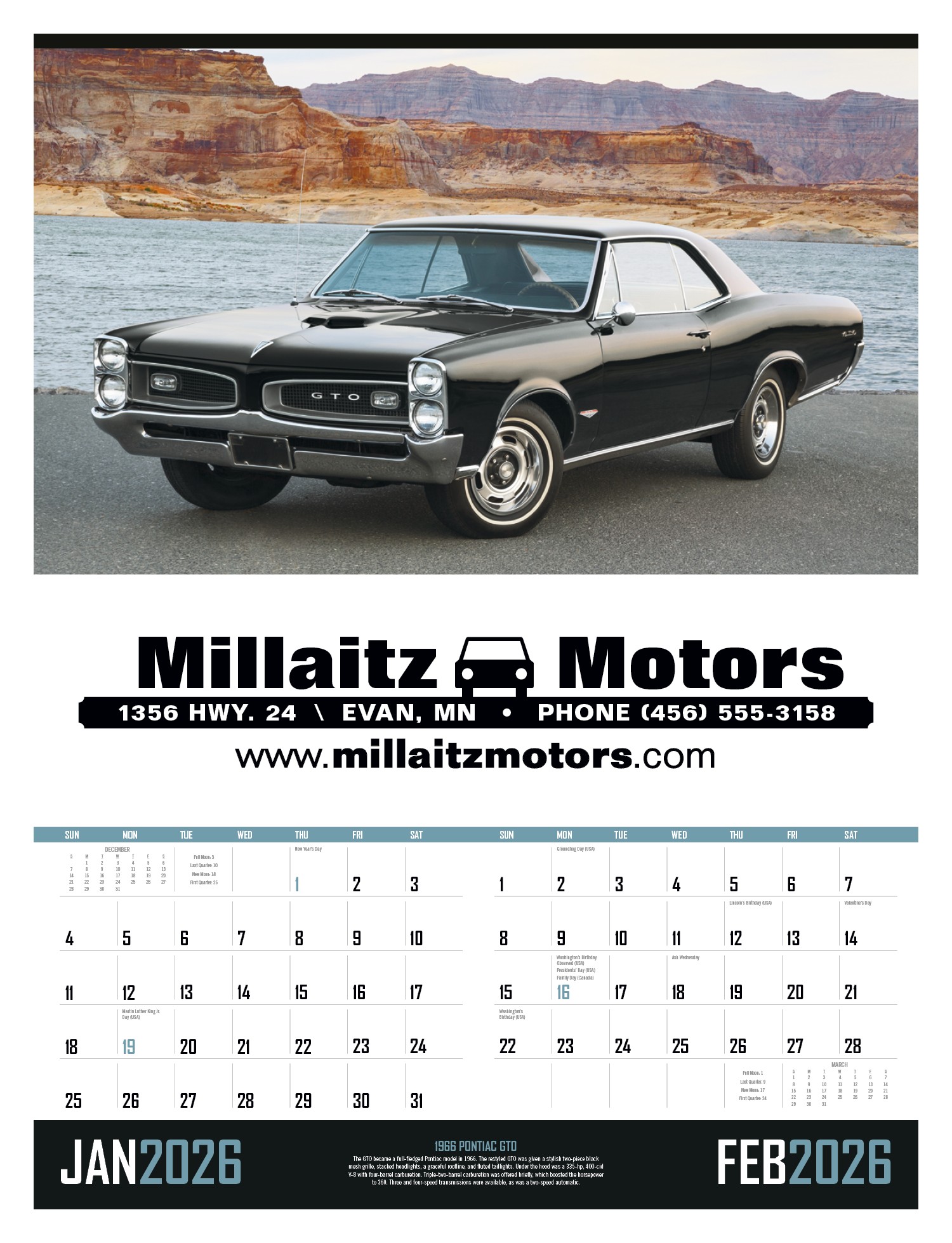 Classic Cars of America make this calendar an advertising vehicle that can be used for countless businesses. With the striking color and engaging history of each car, people are sure to love this calendar. The FSC® label means that the materials used for this product come from well-managed FSC®-certified forests and other controlled sources. 17″ W x 23″ H