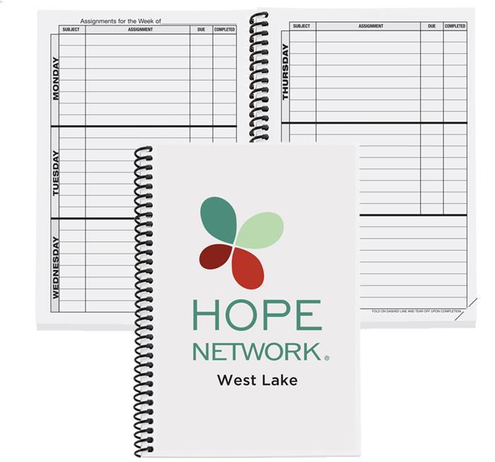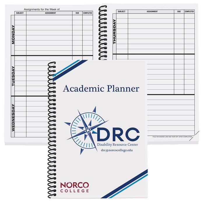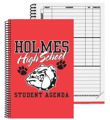 This planner features a white 10 pt. front cover with a clear protective coat on 1 side. Bleed on all sides is included. Back cover will be blank. The 50 Lb. white offset sheets are printed on both sides with a stock 41 week format that includes class schedule, school events schedule, e-mail directory, and student contact list. Comes coil bound on the left side in black plastic unless otherwise specified. 5 3/4″ W x 8 3/8″ H